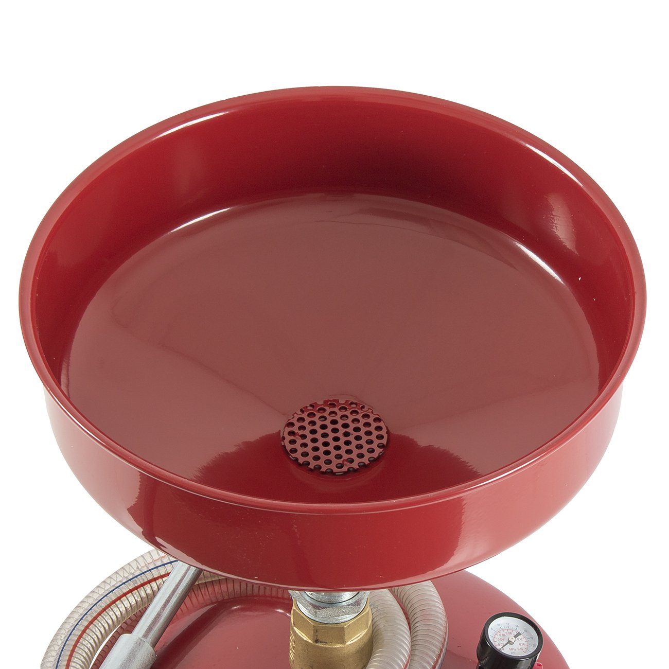 [INCLUDES ALL MATERIALS] This 20 gallon oil drain tank arrives with 4 wheels, a regulator, a drain hose and a gauge with a 1/4" NPT air coupler.