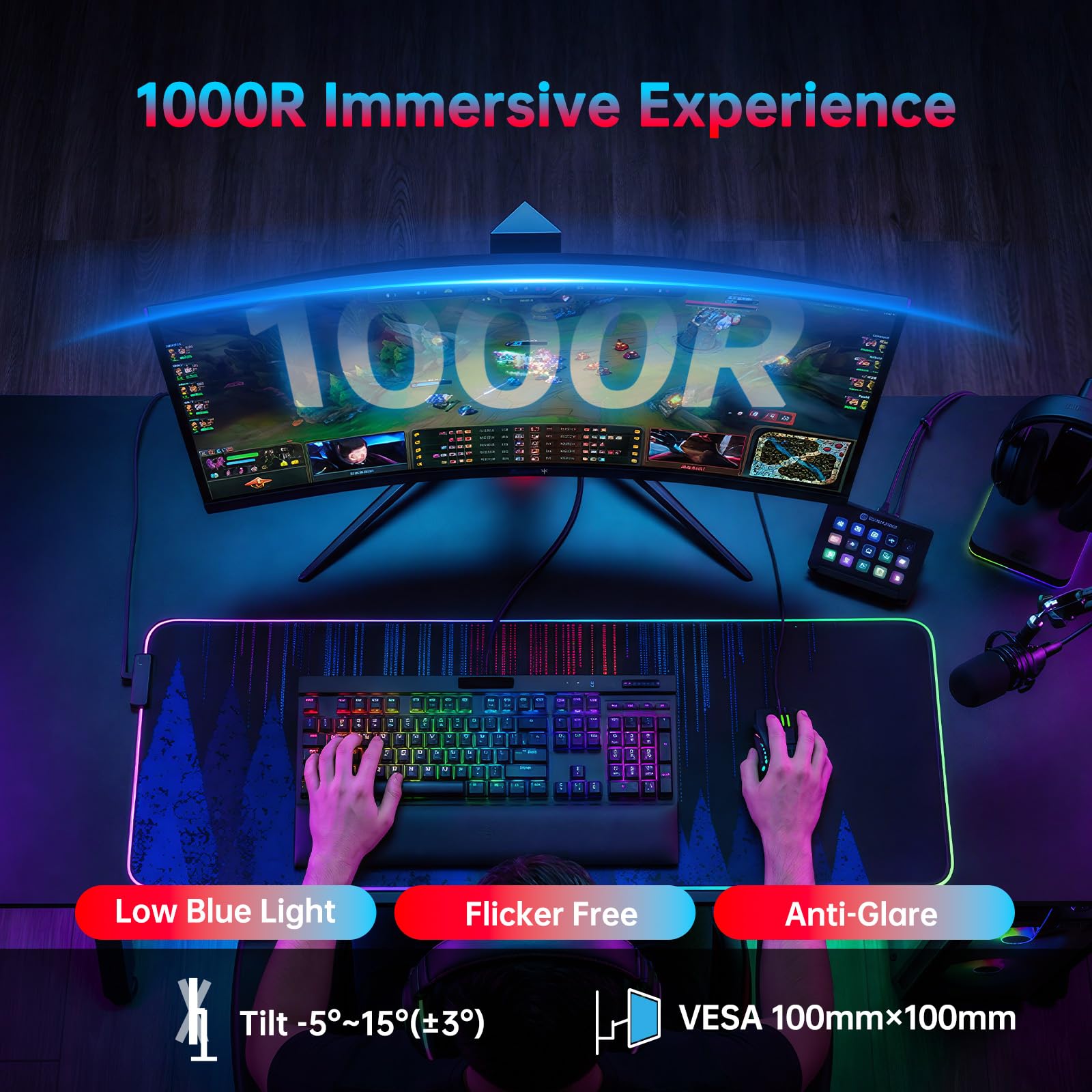 [More Immersive 1000R Curved Screen] The 1000R Curved Gaming Monitor is a cutting-edge display designed to enhance your gaming experience. Tighter than 1500R, the curvature closely mimics the natural shape of your eyes, helping to reduce distortion and providing a wider field of view.