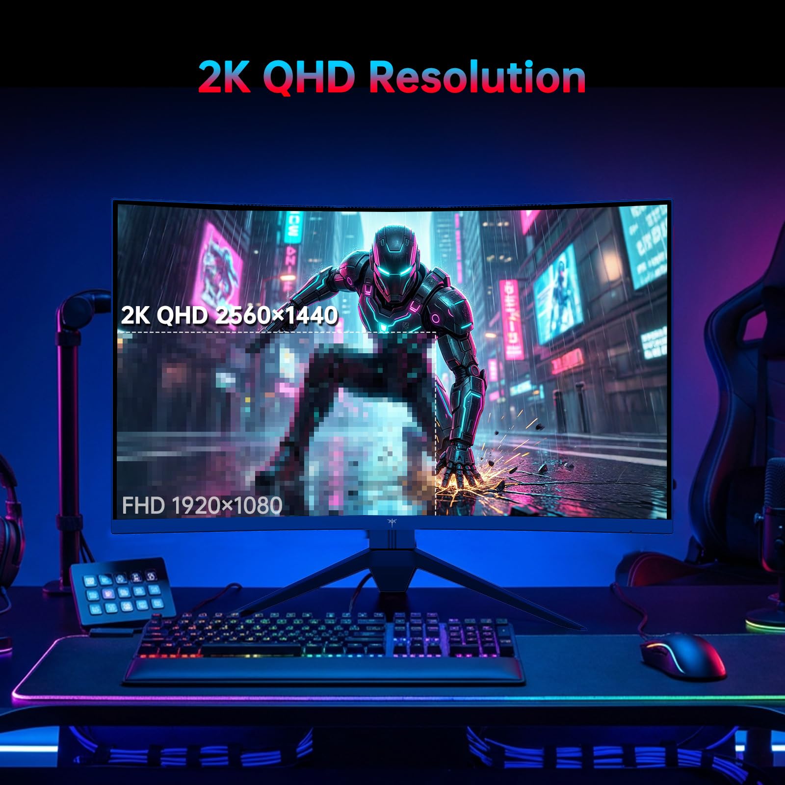 [Crysyal Visuals with 1440p Monitor] This 27 inch 1440P computer monitor with 2K high resolution, unparalleled picture quality. Elevate your viewing with our cutting-edge QHD display. This curved monitor makes every moment come to life with QHD 2560x1440 pixels ultrawide screen.