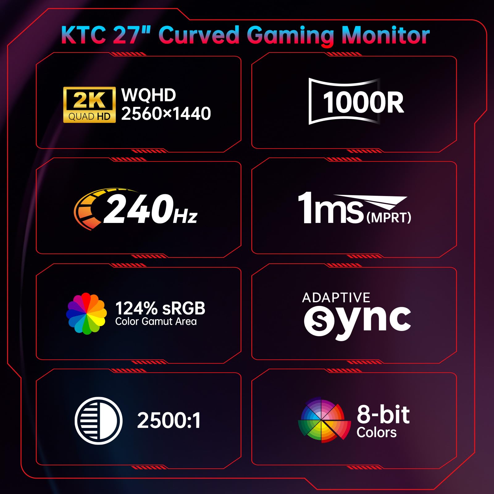 [Experience True Color Excellence] Boasting a 124% High Color Gamut and 178° wide viewing angle, this 1440p 240hz curved monitor delivers stunning color accuracy. This monitor features pre-set sRGB with color calibration technology, ensuring images and graphics appear as vibrant and authentic as possible, making it an excellent choice for tasks that require precise color representation.