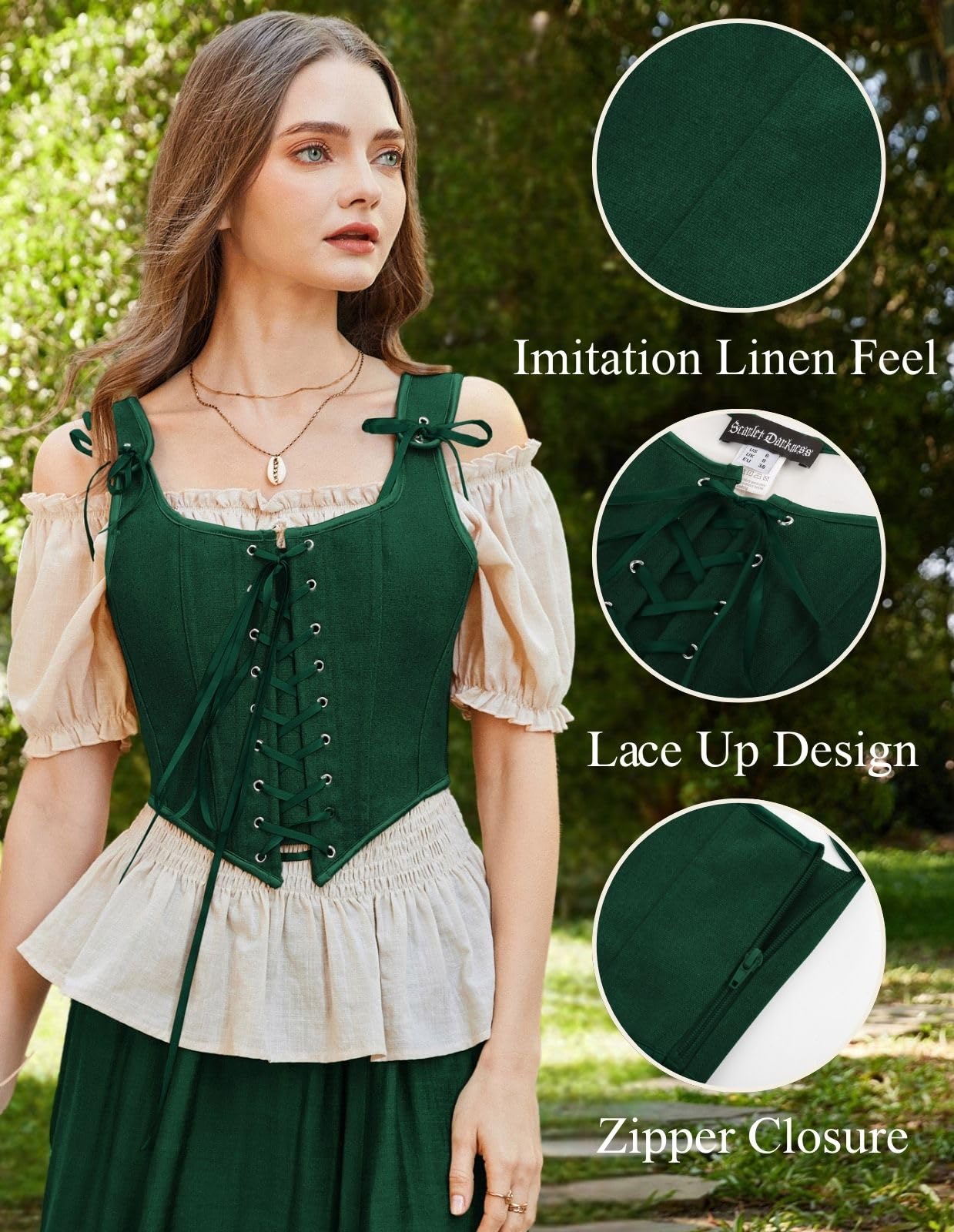 Breathable Imitation Linen Fabric: Crafted from high-quality imitation linen, Renaissance corset tops for women offers exceptional breathability and comfort, great for warm weather and extended wear