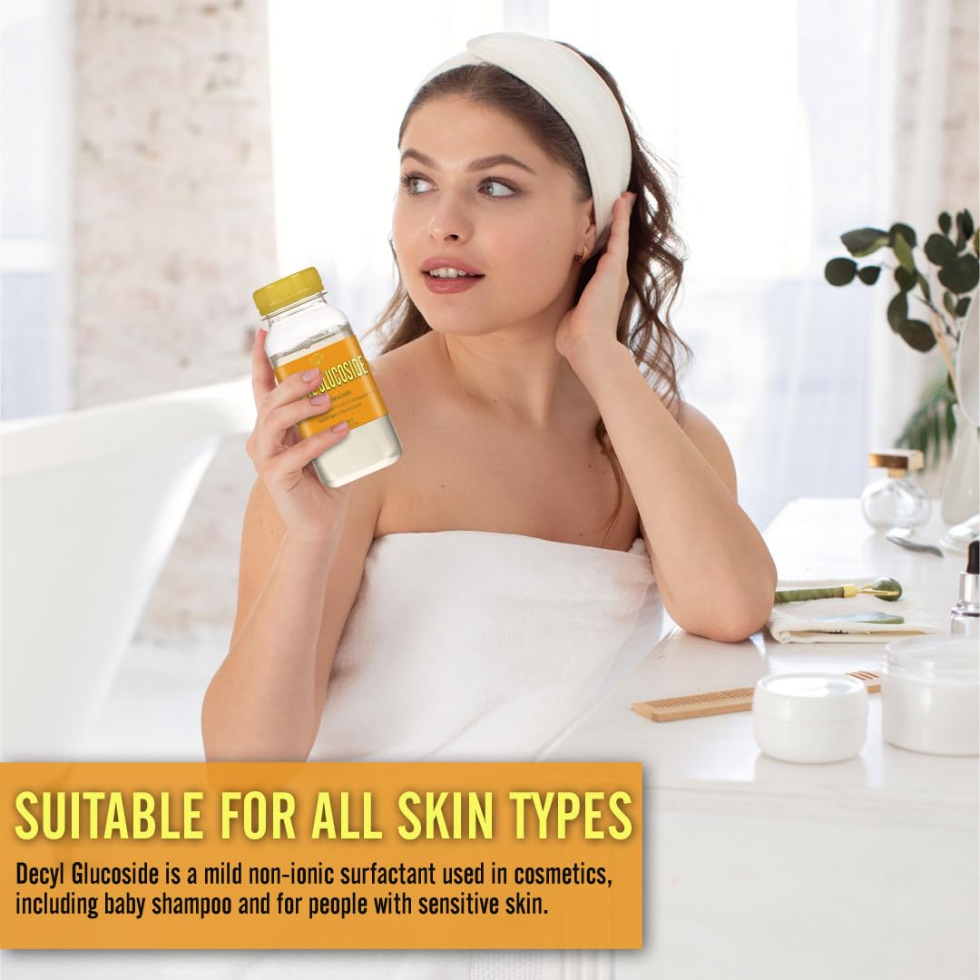 SUITABLE FOR ALL SKIN TYPES - Decyl glucoside is a mild non-ionic surfactant used in cosmetics, including baby shampoo and for people with sensitive skin. Many natural personal care companies use this cleanser because it is herbal, biodegradable and gentle on all hair types.
