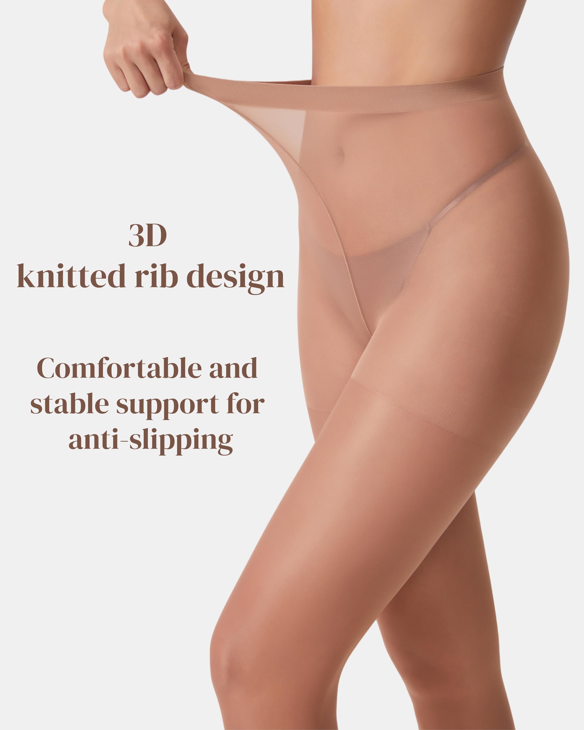 CONTROL TOP: 20D high-density knitting applies just the right amount of pressure, gently tucking in excess belly fat, lifting the lines of the buttocks, and creating a natural and beautiful S-shaped curve. Maintain an elegant posture in daily wear or when paired with skirts.