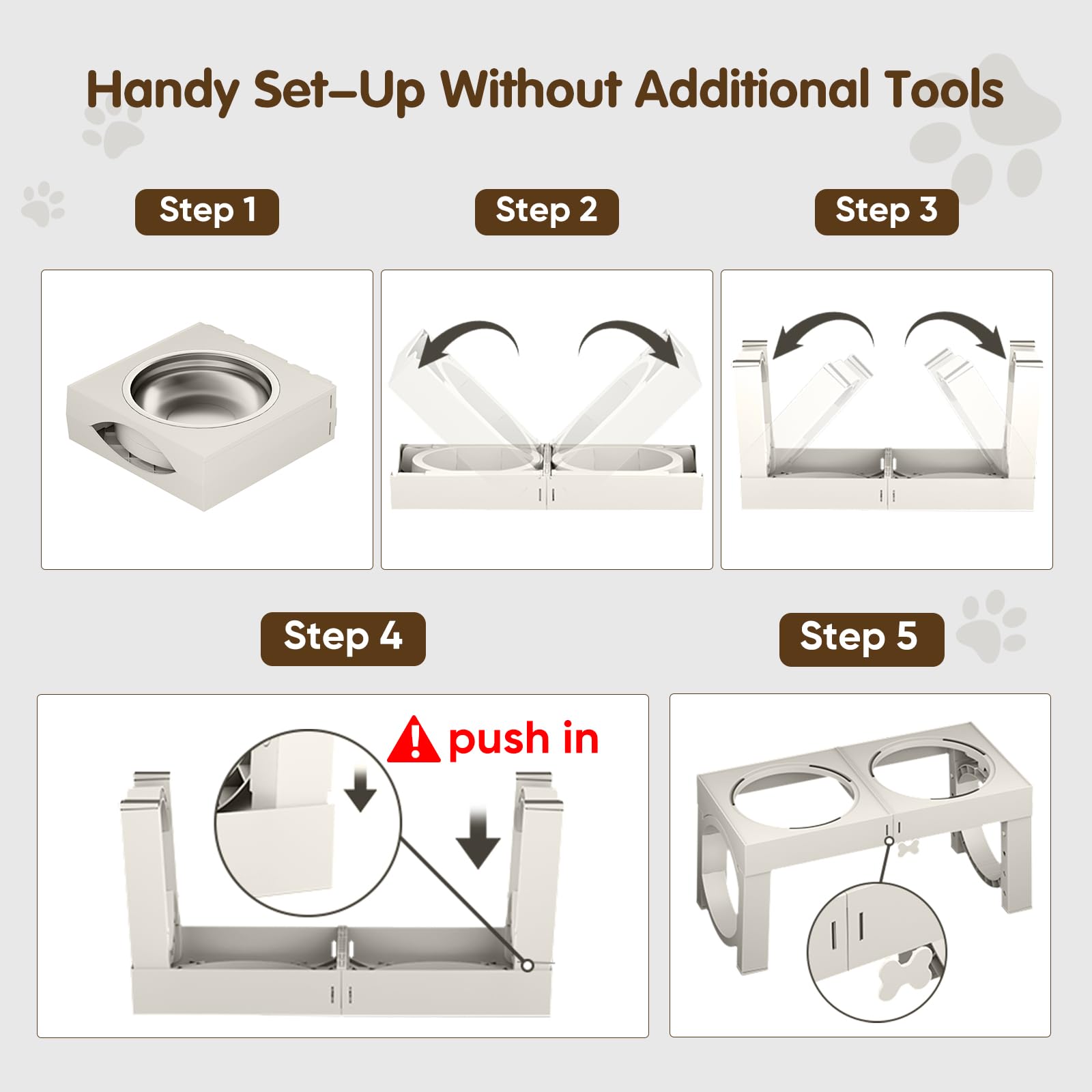 ADJUSTABLE HEIGHT RAISED DOG BOWLS: Our raised dog bowls for large sized dog can be adjusted to four different heights 3.15'' 9.09'' 10.63'' 12.20'' 13.78'', suit for all breeds and ages. Designed for large dogs, the maximum adjustable height is approximately 1.58 inch higher to fit large dogs needs.