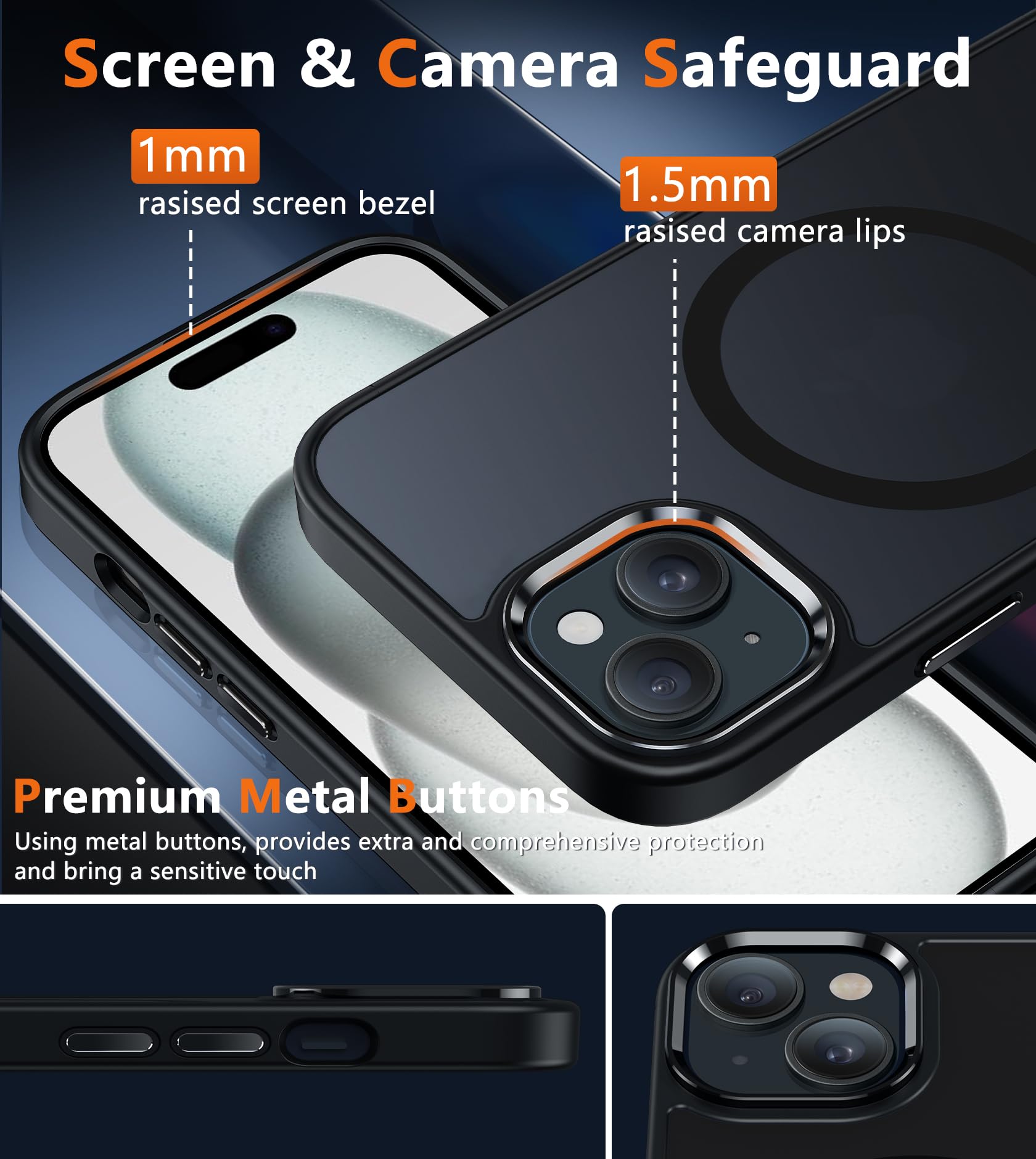 Raised Camera & Screen Protection: The screen 0.05 inch (1.2mm) raised edge and the camera lens 0.1 inch (2.5mm) raised edge of our iPhone 15 plus clear case can prevent daily scratches when the phone is placed down on a table. We focus on every detail