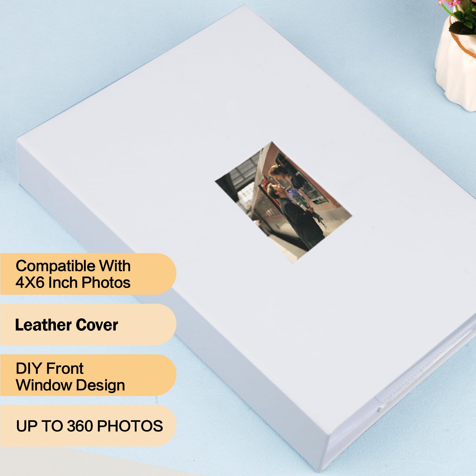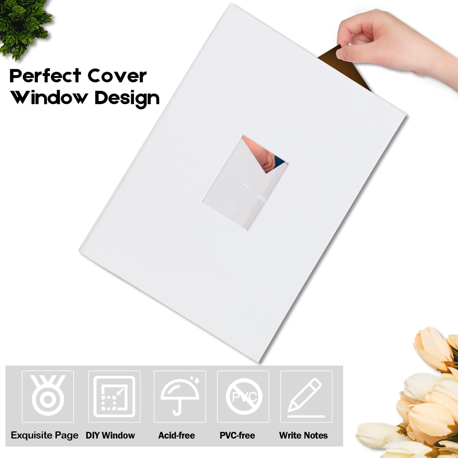 DIY FRONT WINDOW DESIGN: Each 4x6 photo album book has an open window to insert a favorite photo, where you can display your photos or wedding baby family anniversary picture.