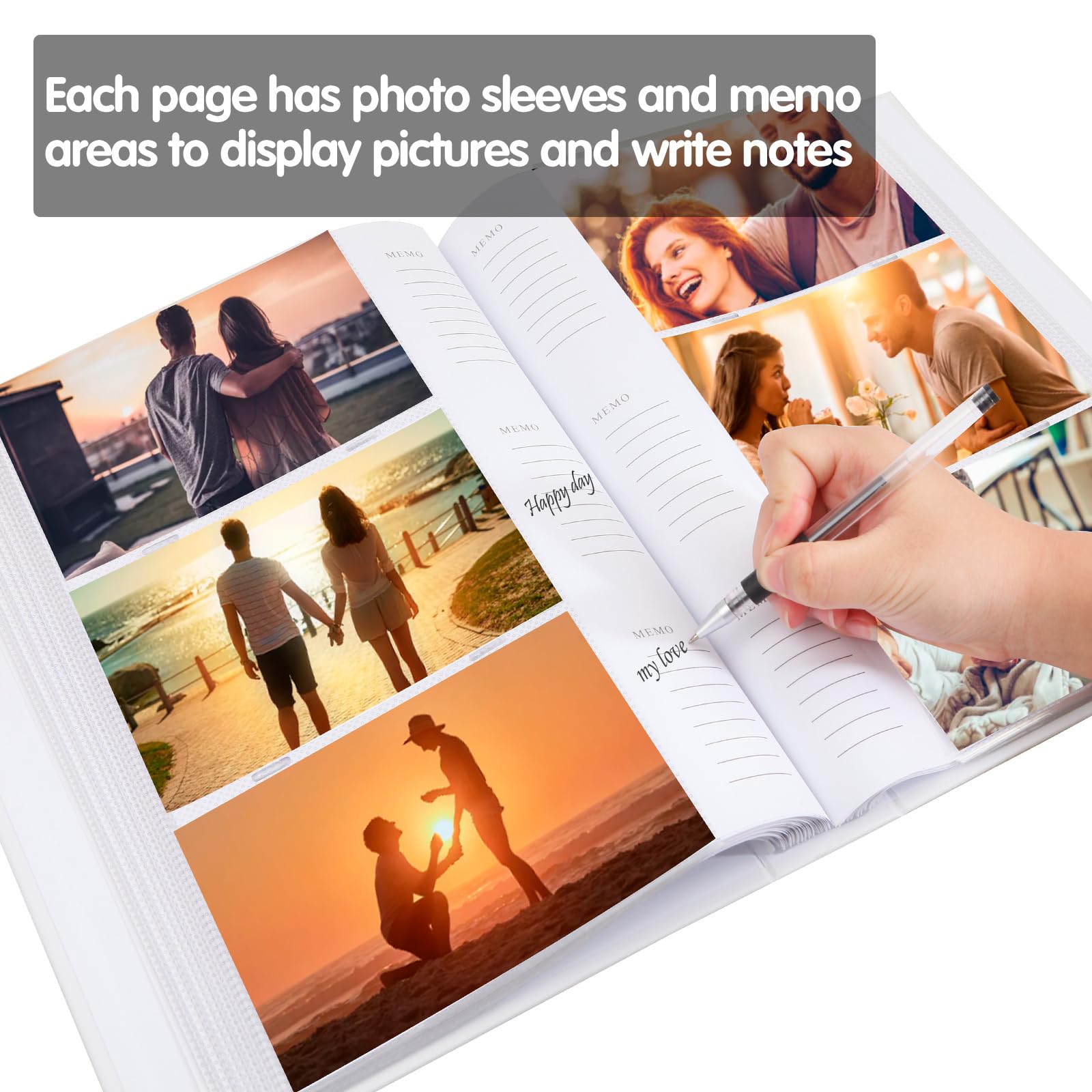 MEMO AREA INNER PAGES: Each page of the 4x6 photo album has 3 memo writing space, good to record something on it. The inner pocket sleeves are made of clear PP material, provides a high-quality preservation to your memories.