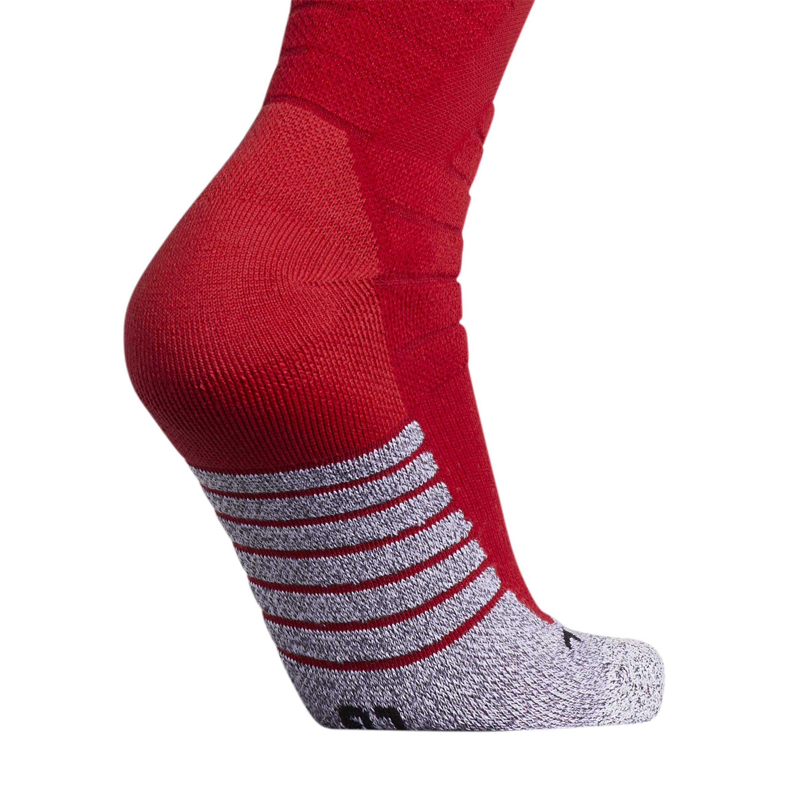 Description The right gear for the job, these adidas football socks help you maximize your game. cushioned pods offer extra comfort and protection. built-in arch and ankle compression adds support for agility and blocking drills.