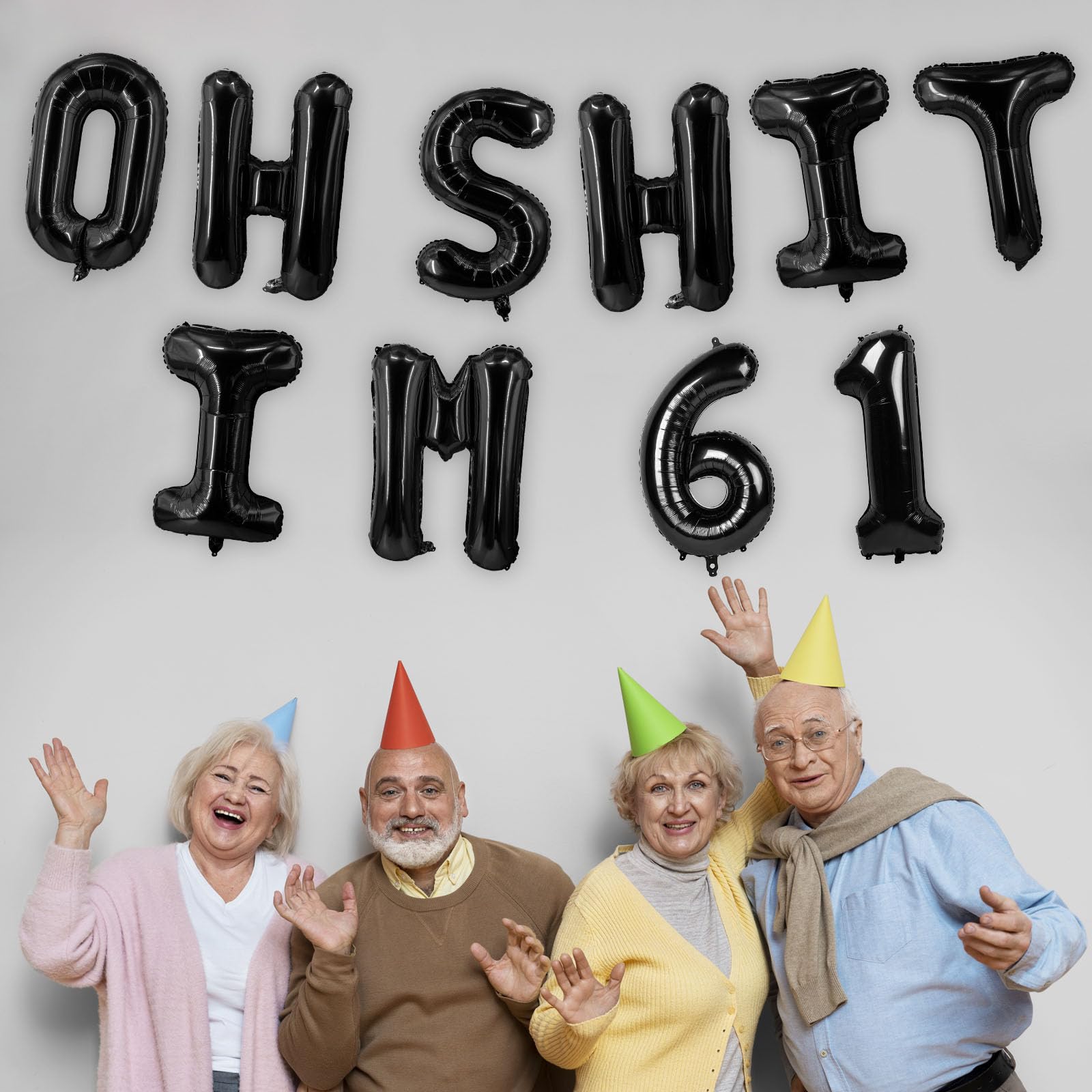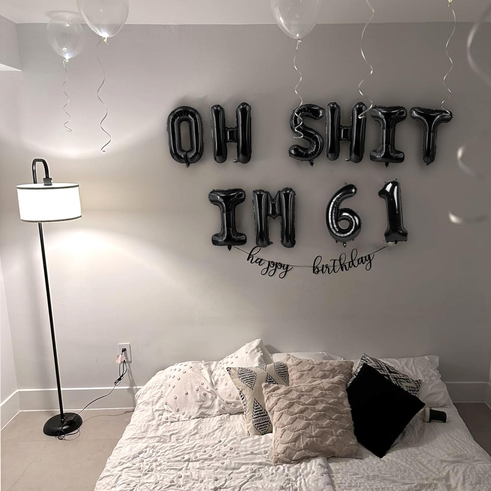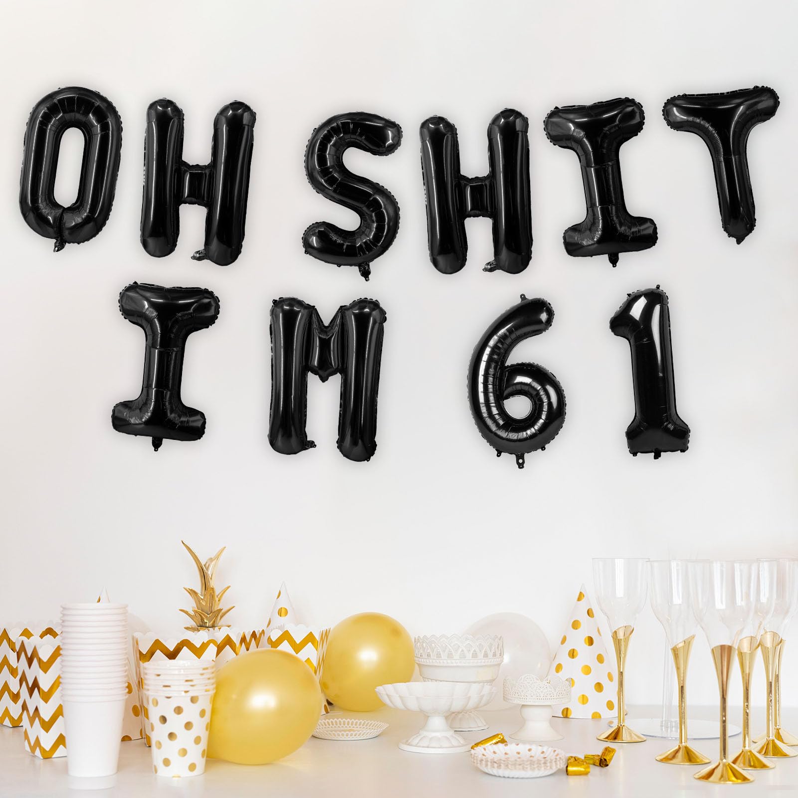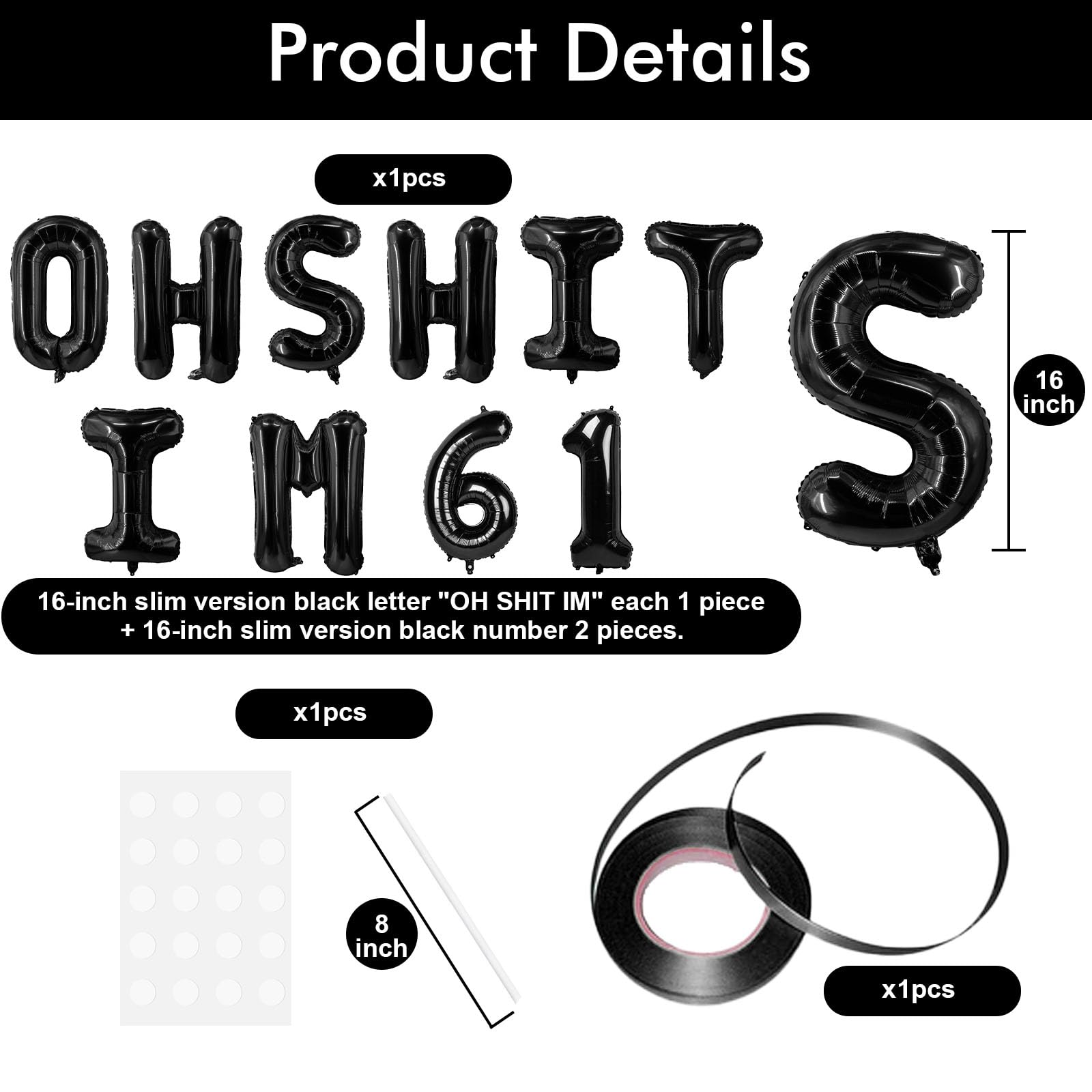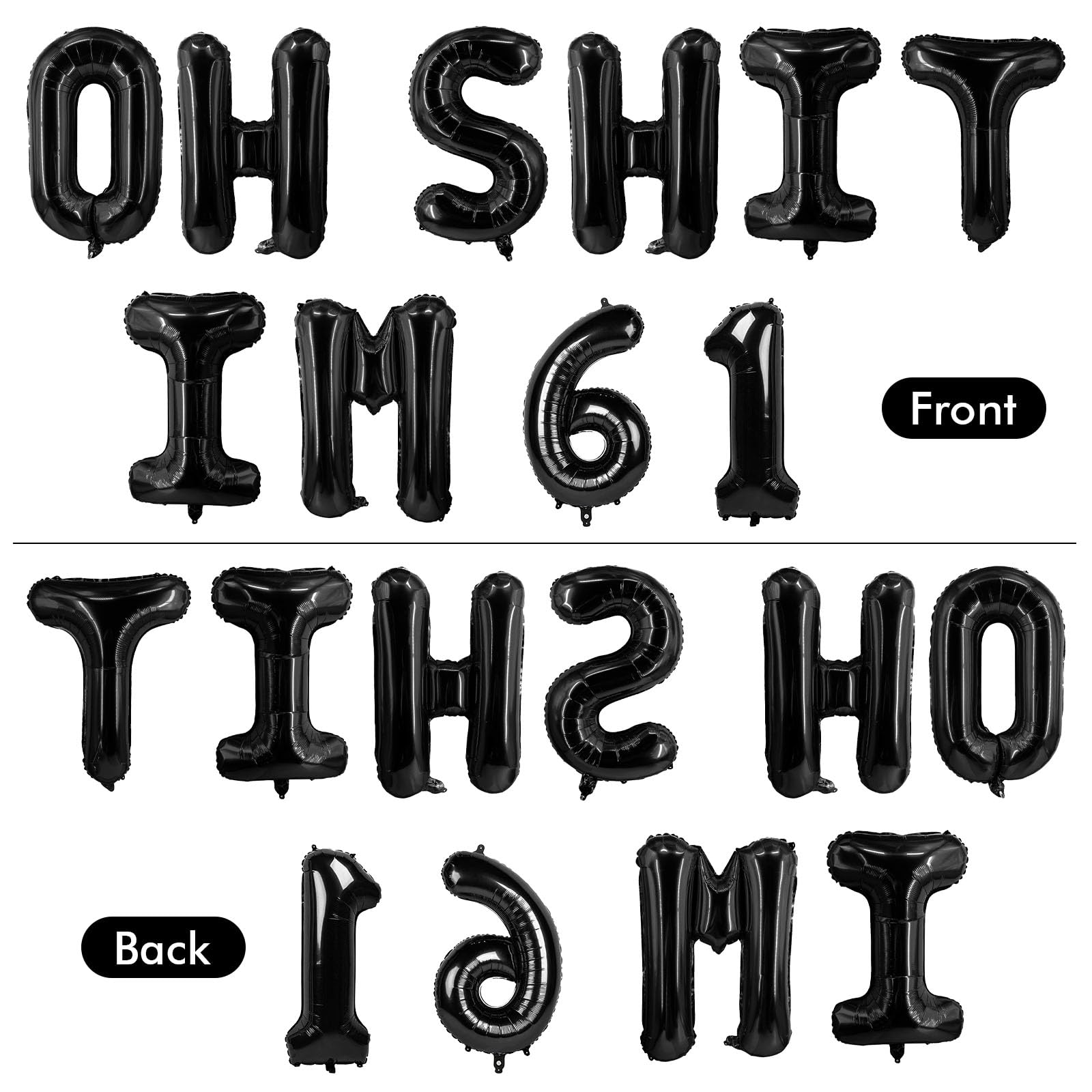 Funny Birthday themed decorations: All balloons are printed with black color(O H S H I T I M 6 1), Make your birthday party more fun