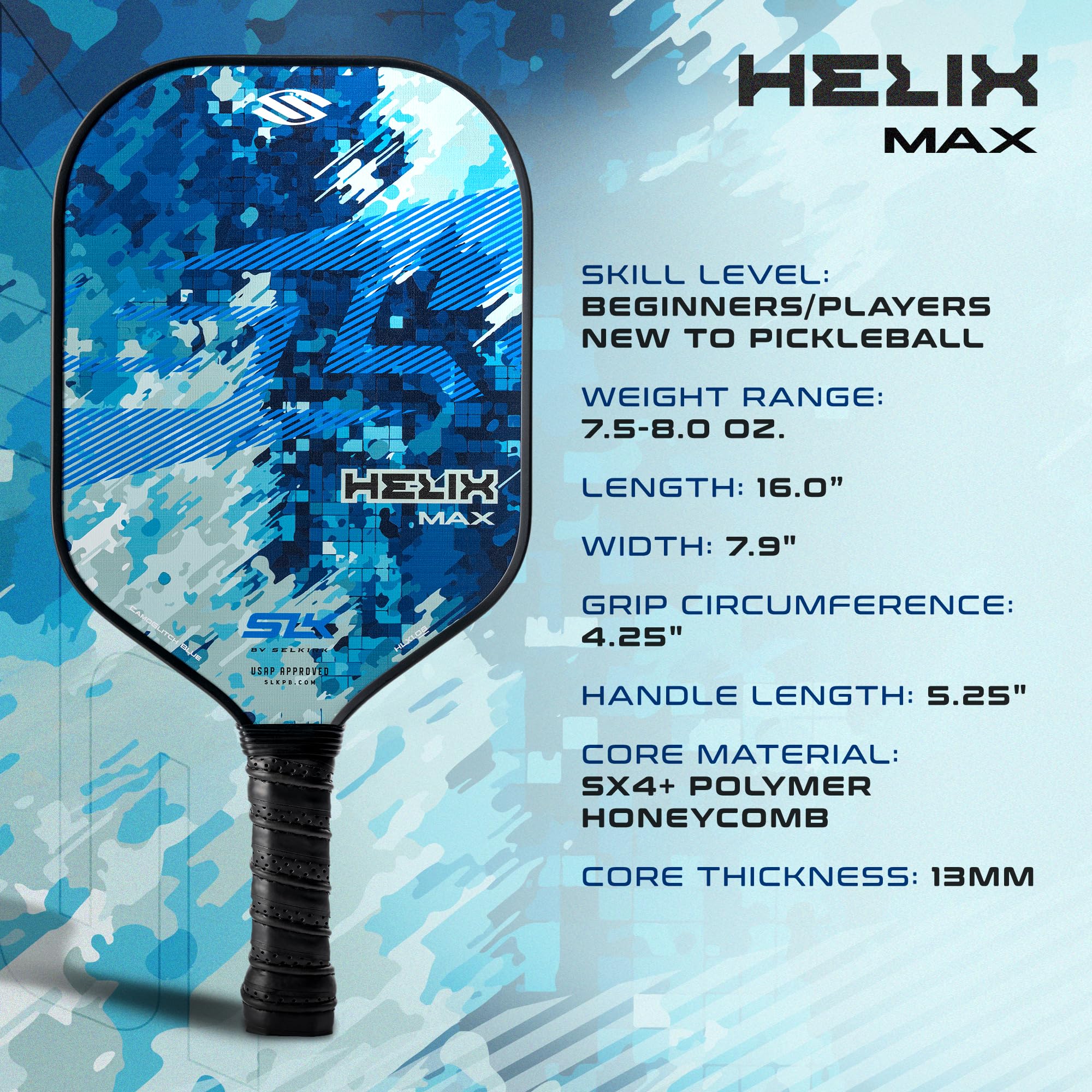 NEXT-GENERATION PERFORMANCE: Crafted with the mission to champion the next generation of pickleball players, the SLK Helix Max is a hybrid paddle ideal for players new to pickleball who are looking for exceptional performance and unmatched value.