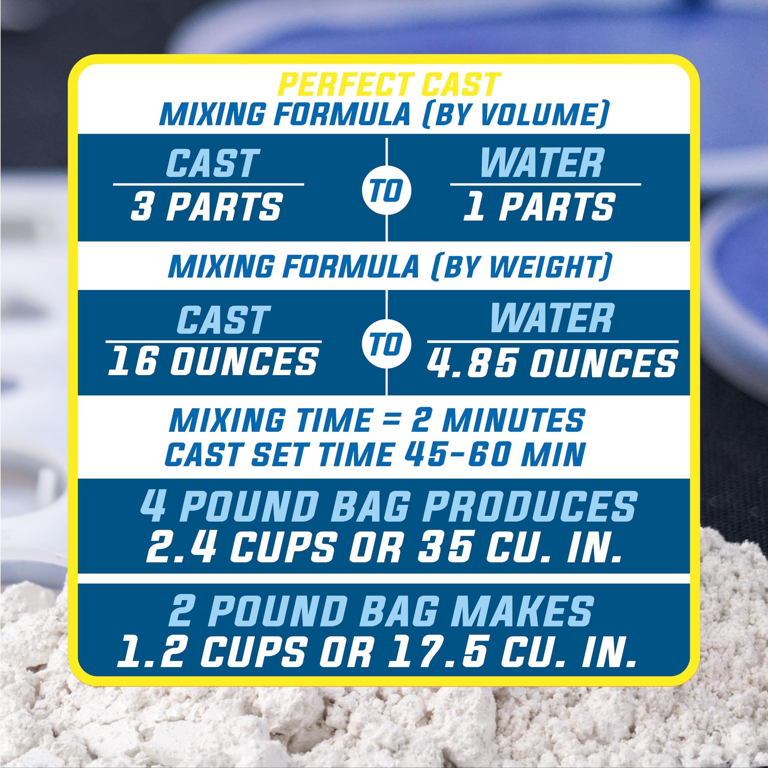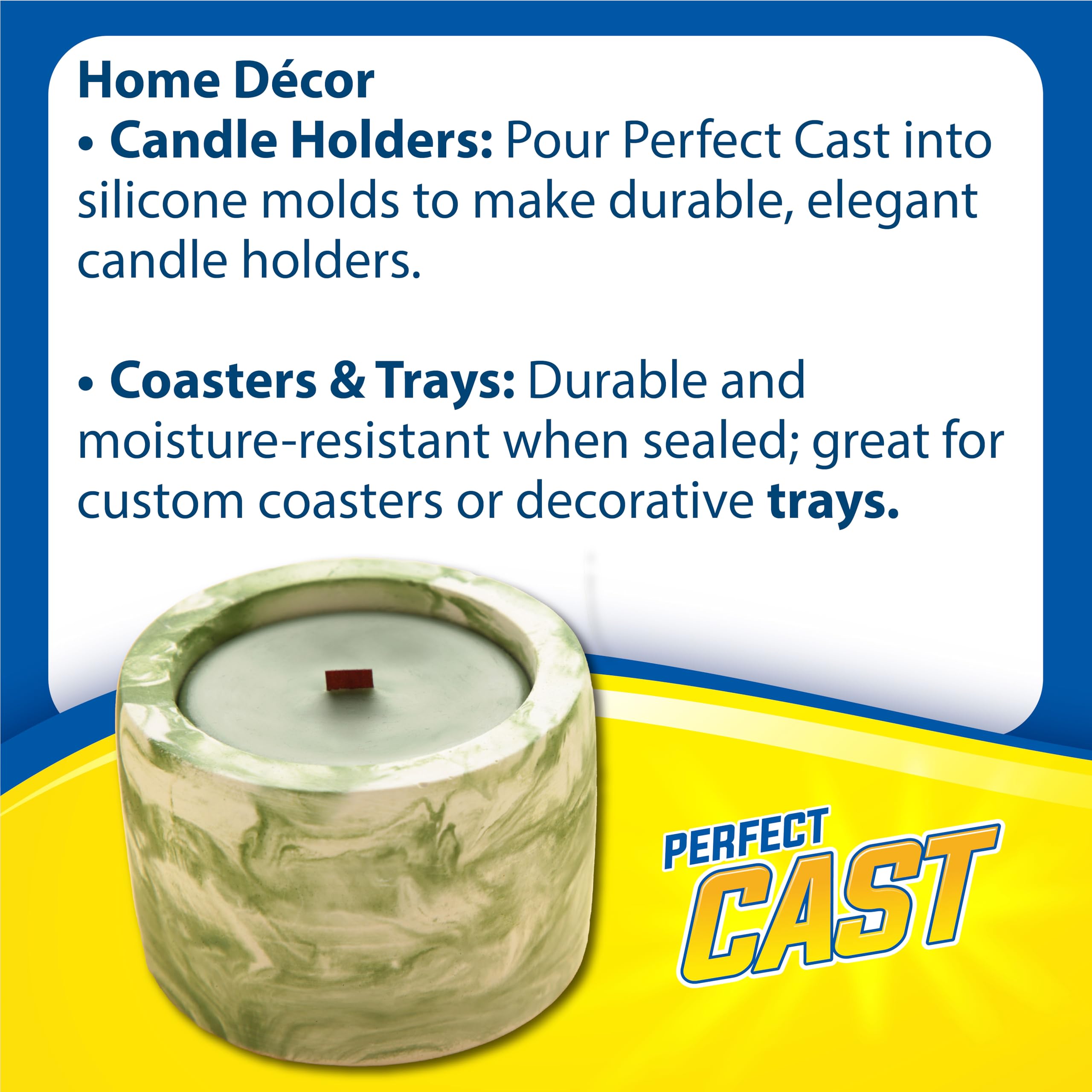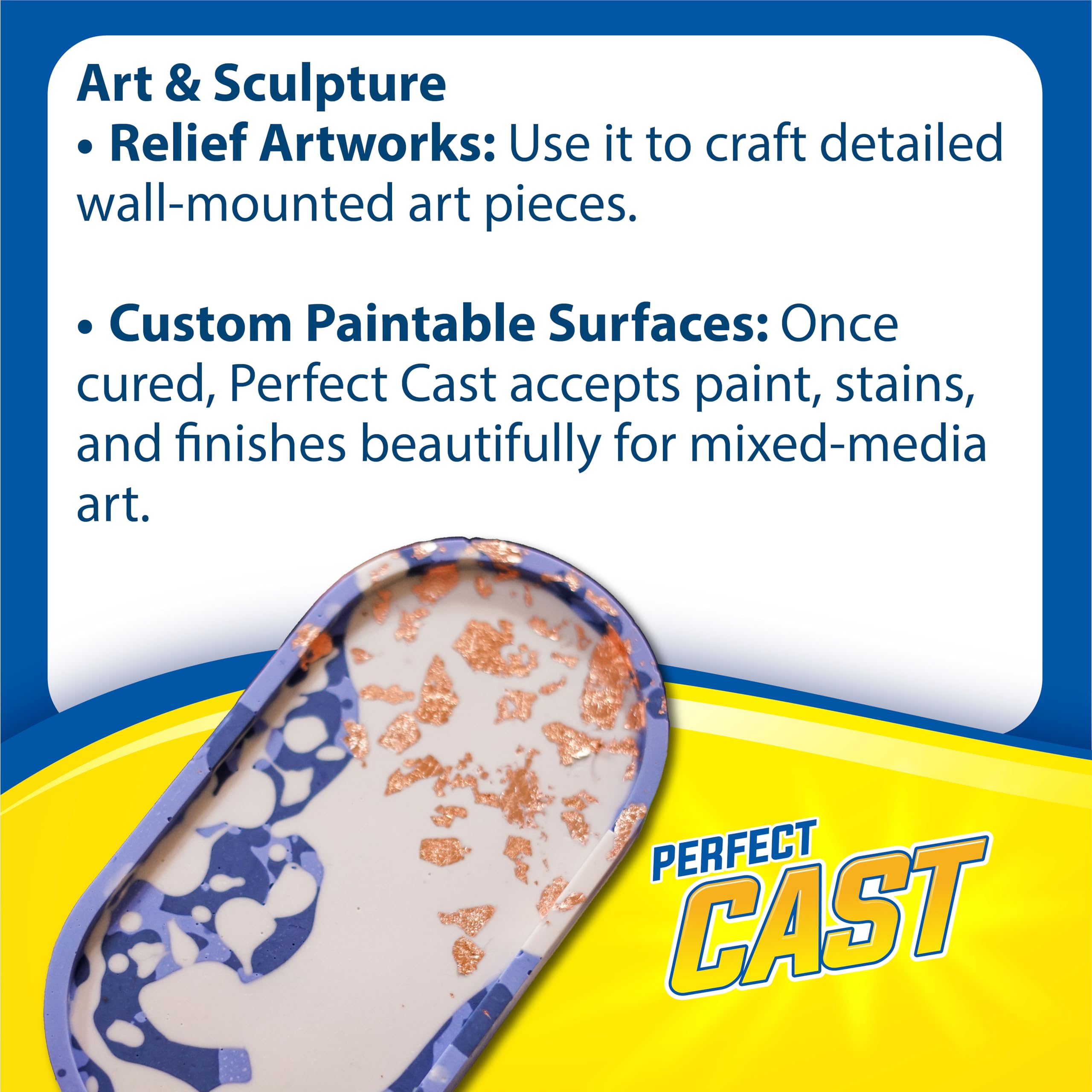 Just mix with water and Perfect Cast is ready to pour - your creations will harden to perfection in 30-45 minutes and will be 5 times stronger than ordinary plaster casts, with a 10,000 psi tolerance similar to resin materials but without the mess, odor and extended drying time