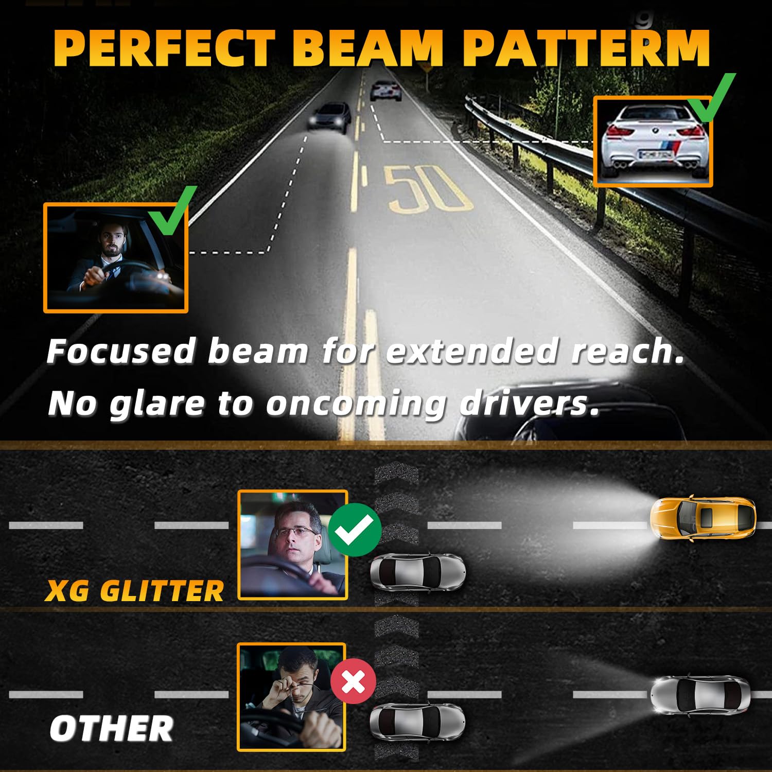 【Excellent Brightness】With a total of powerful 36000 lumens (6000 lumens per bulb), upgrade to our Odyssey light bulbs for a brighter drive! The 6500K white light, akin to natural daylight, reduces visual fatigue. Also, expect sharp cut-off lines, clear beams, no black spots, and zero flickering.