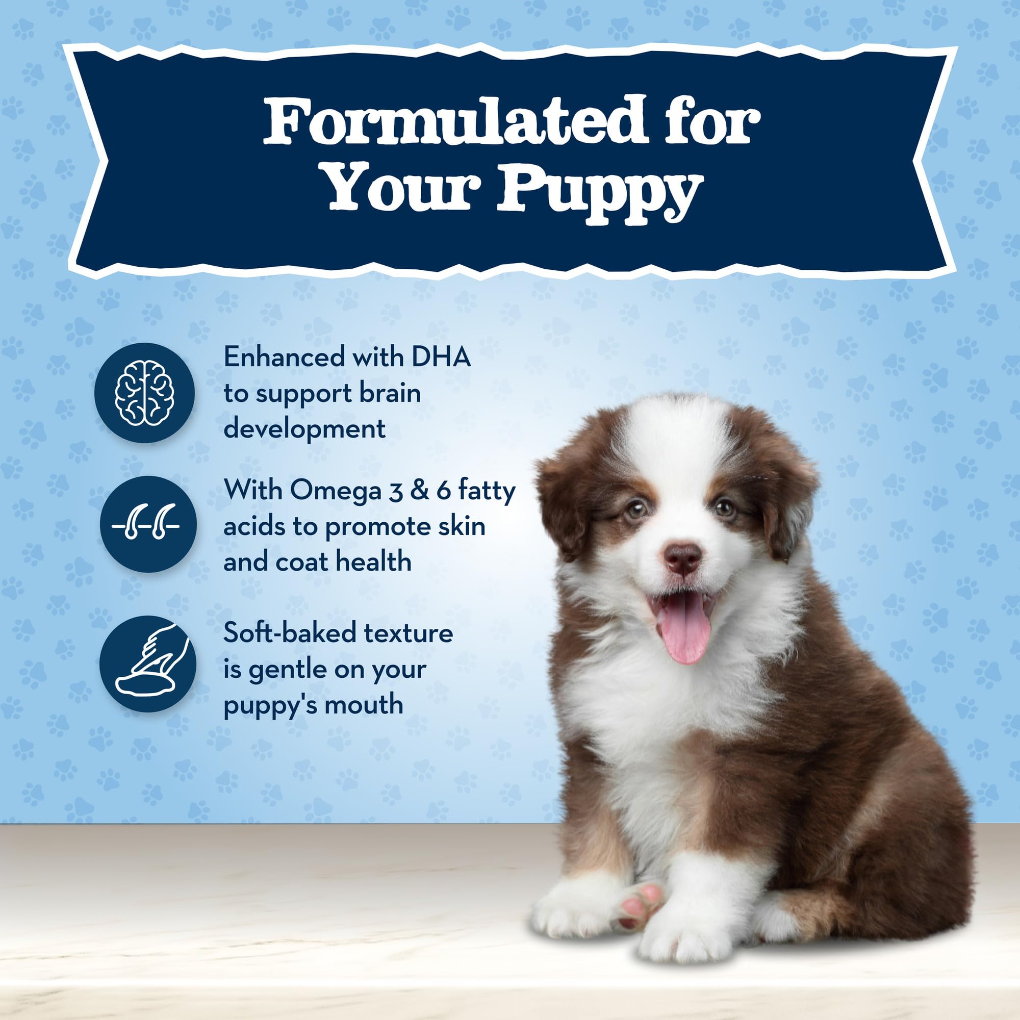 ENHANCED with DHA: These puppy treats with DHA are formulated to help support cognitive development