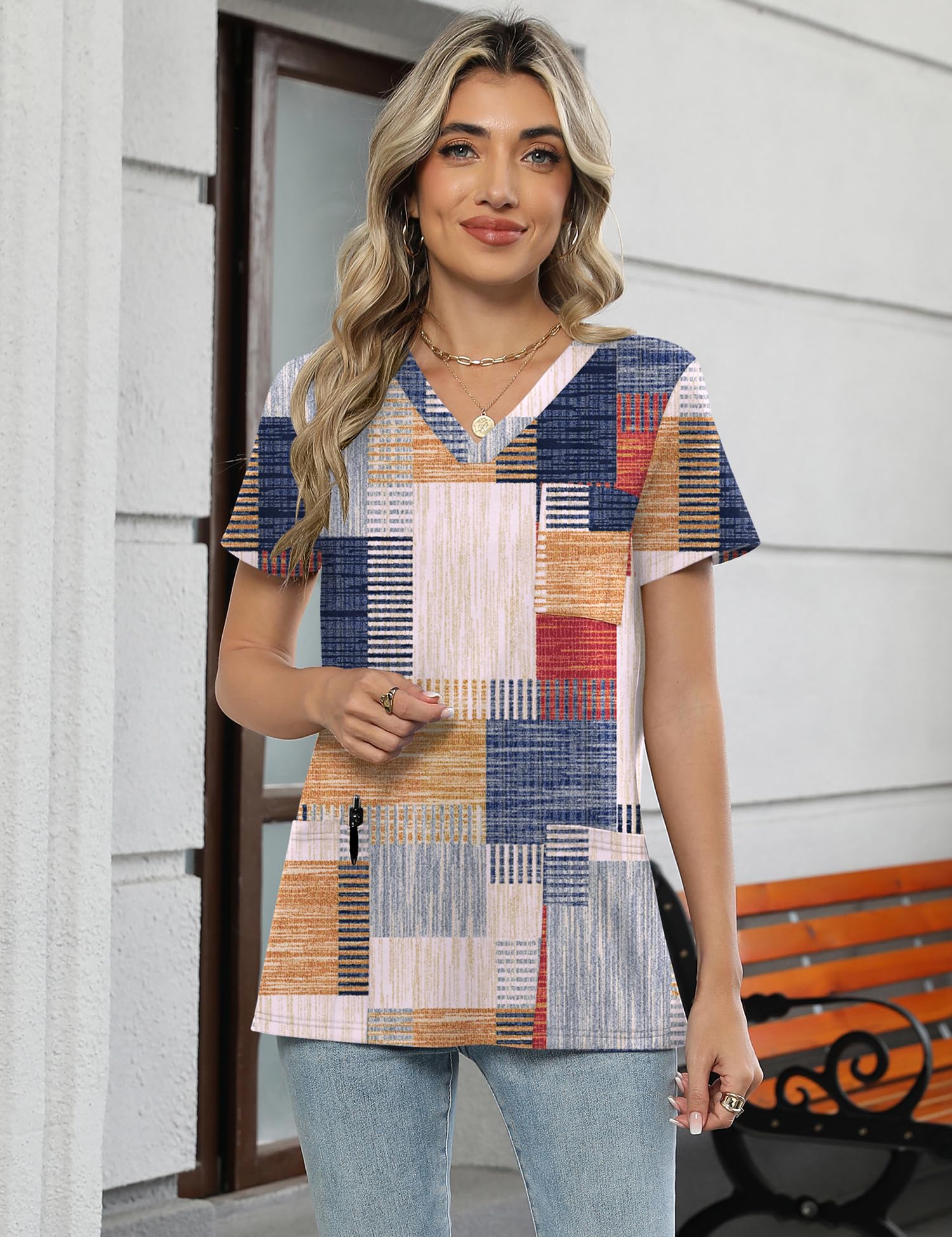 Design: Scrub shirts for women short sleeve nurse uniforms features print color, classic v neck, simple short sleeve, side slits and 3 functional pockets. Printed scrub tops are simple and lovely, including casual, cartoon, holiday, colorful prints, suitable for professional environments as well as daily casual.