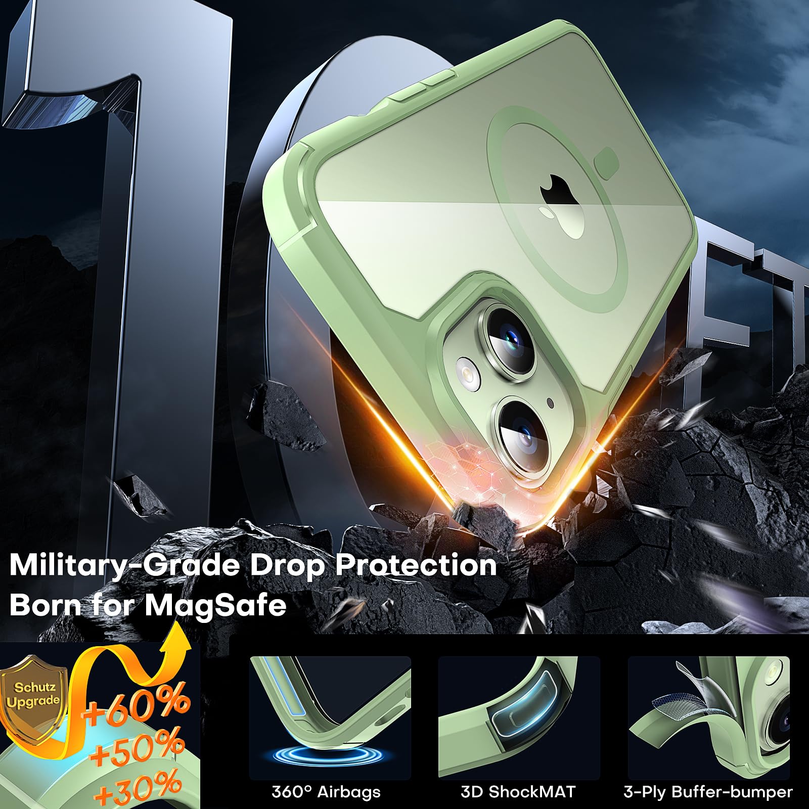 【Military-grade Protection】The TAURI for iPhone 15 Case is certified in drop tests. It combines a soft frame and a hard PC back cover with four built-in corner airbags to absorb impact, safeguarding your new phone from accidental drops, bumps, and scratches