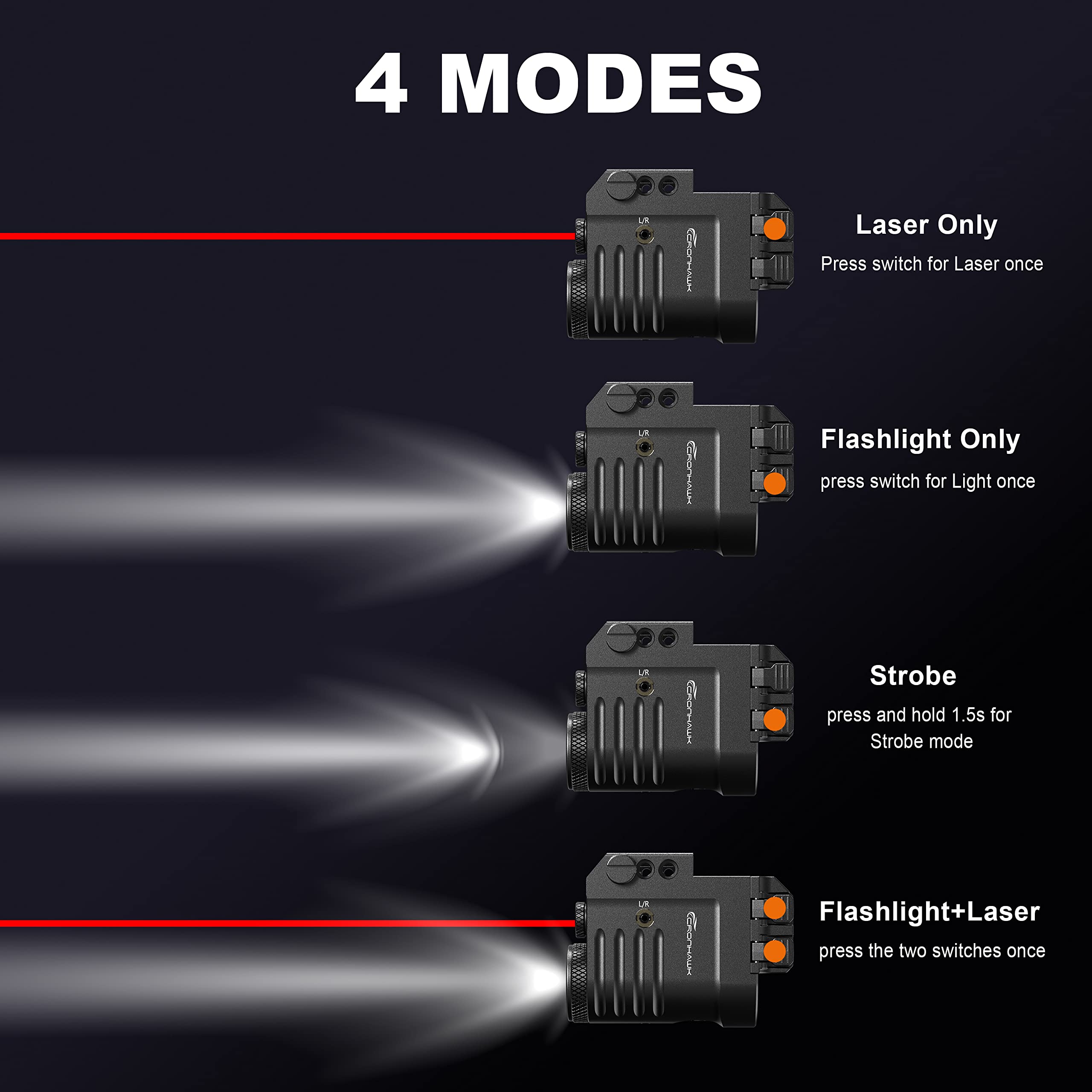 Durable Picatinny Flashlight for Pistol: The red laser beam for pistol is made of anodized aluminum, more durable than other materials, the picatinny gun flashlight fits most pistol with MIL-STD-1913 Picatinny rail One Slot or Multi Slot