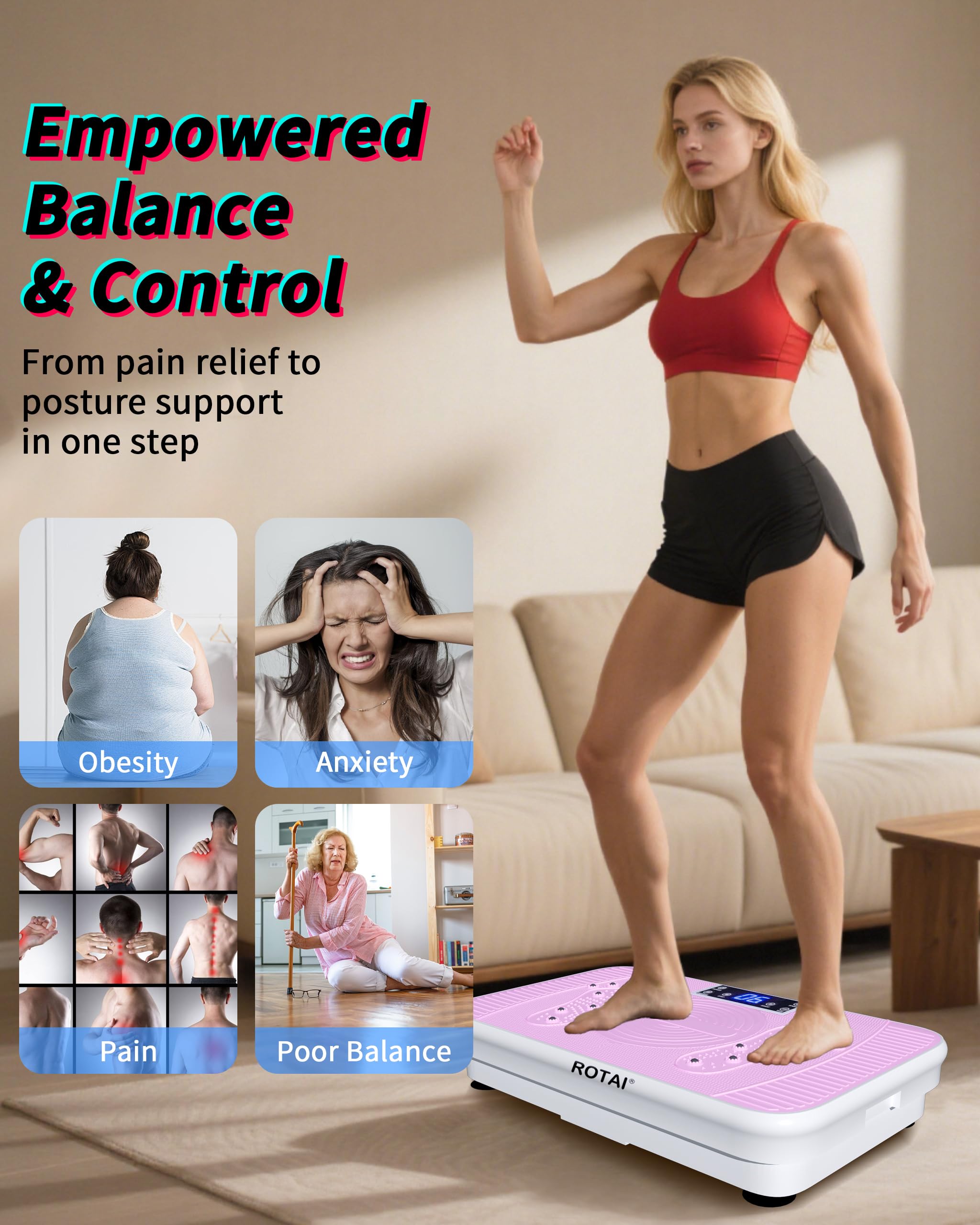 ENHANCE CIRCULATION & DETOX EFFORTLESSLY: The ROTAI vibration plate for lymphatic drainage gently stimulates muscles to boost full-body circulation and support natural detoxification—simply sit, stand, or squat, and let the machine do the work. No strenuous workouts required for revitalizing results. (vibration plate exercise machine for lymphatic drainage vibrating platform machines shake power plates)