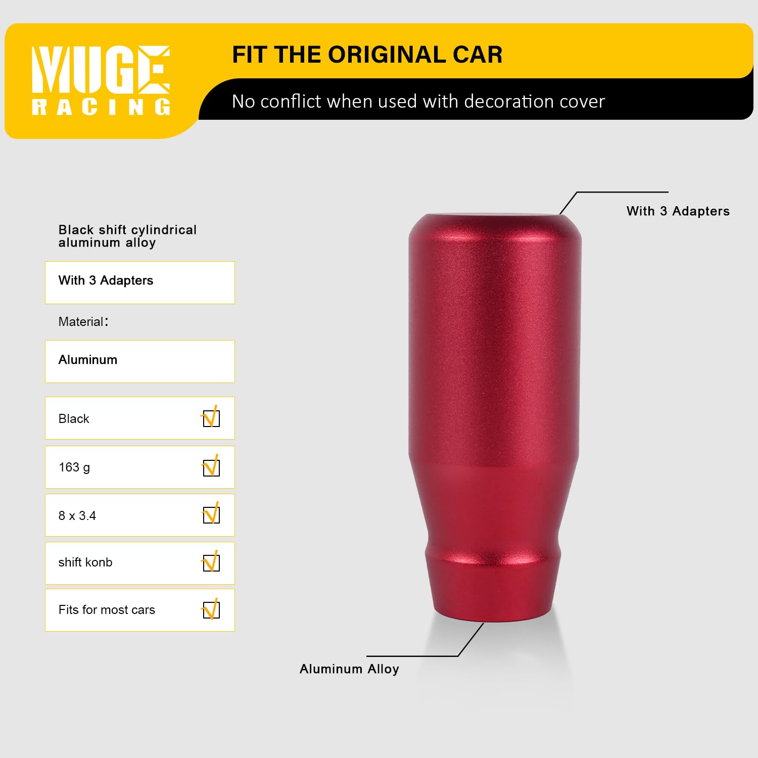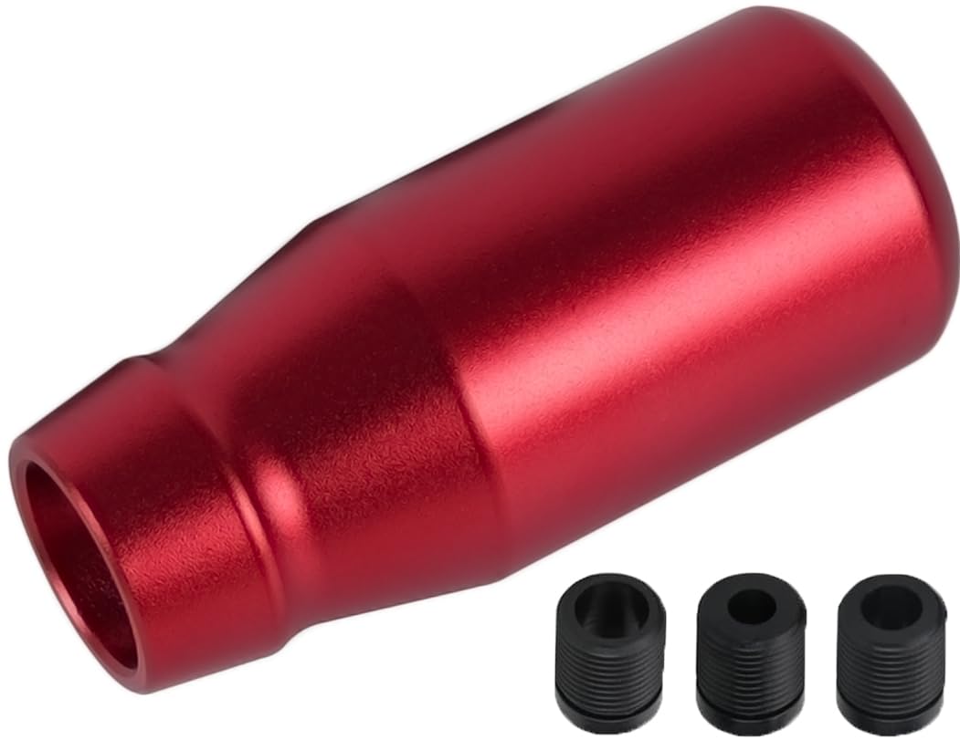 Specifications: Material: Aluminum Alloy Color: Red, Black, Blue Size: 80mm/3.15" Weight: 5.86 ounces Package Include: 1 x Car Shifter Knob, 3 x Adapters Why you need our Car Shifter Knob? -High quality: made of aluminum alloy, very strong and durable, anti-corrosion, long service life. -Easy to hold: the design conforms to the line of human hand, easy for you to operate the car shifter head, hold it firmly, so that your hand will not feel fatigue. -Convenient: small size is easy to carry, and easy to install, no extra tools are needed to complete the installation. -Widely applicable: suitable for most of the car models, you can rest assured to buy. -Aesthetically pleasing: designed with smooth lines, available in red, black and blue for your choice, showing your personal charm.