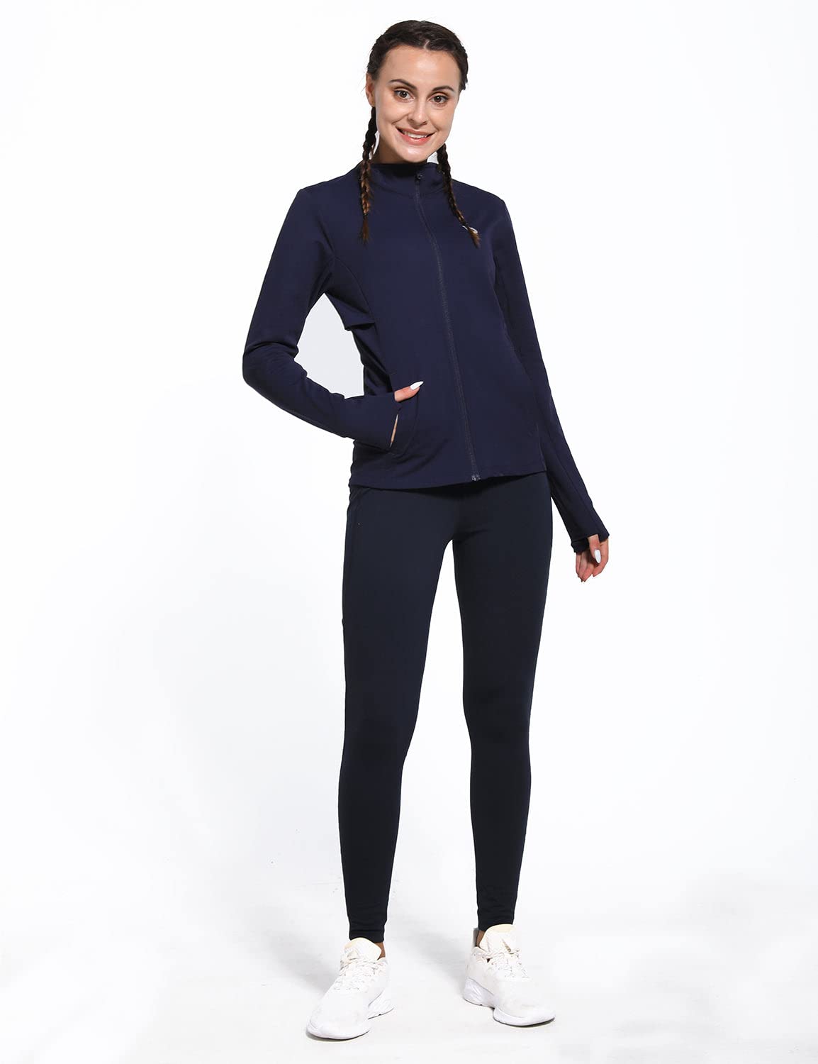Description Warm & Water Resistant: The soft fleece inside provides long lasting warmth and comfort. Water resistant fabric can handle light rain for a short time.This slim fit full zip running jacket was made for all body shapes, offering comfort and accentuating your silhouette Thumb holes & Mesh Vents: This long sleeve track jacket also offers thumb holes to increase hand coverage and warmth during the cool weather. Hidden underarm mesh vents provide ventilation and prevent overheating 5 Pockets & Reflective Elements: Our fleece lined running jacket with two side pockets, a rear zipper pocket and 2 hidden inner pockets to store your items. Reflective elements for low-light visibility Full Zipper & Stand-up collar: This thermal running jacket has a self-locking function to keep the left zipper fixed during exercise and not easy to slip. Stand-up collar style could help you to keep warm Muliti-Use: Women's fleece zip up jacket is super warm, It can be worn on their own or over your shirt. Perfect activewear for yoga, exercise, gym, cycling, running, any type of workout, or everyday use