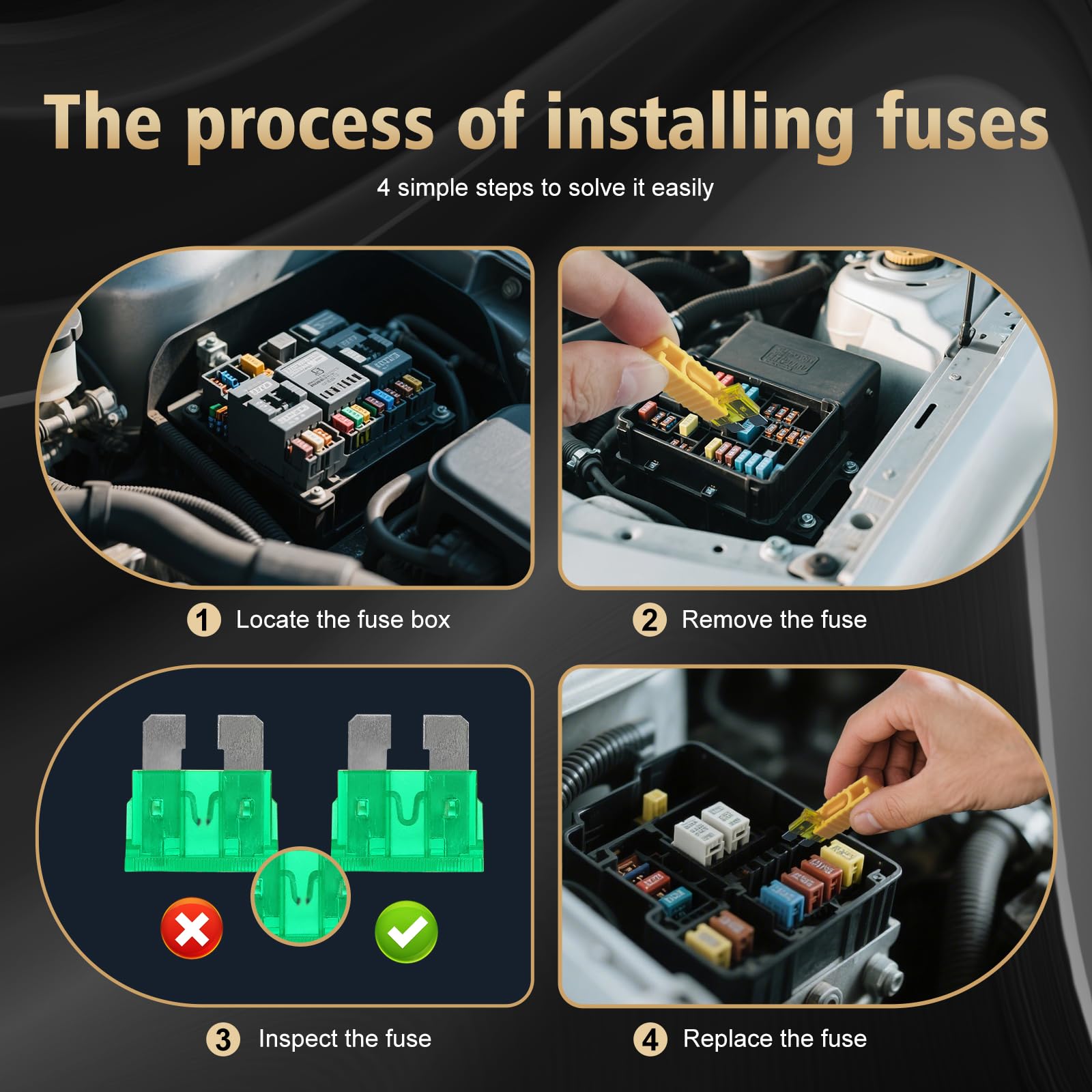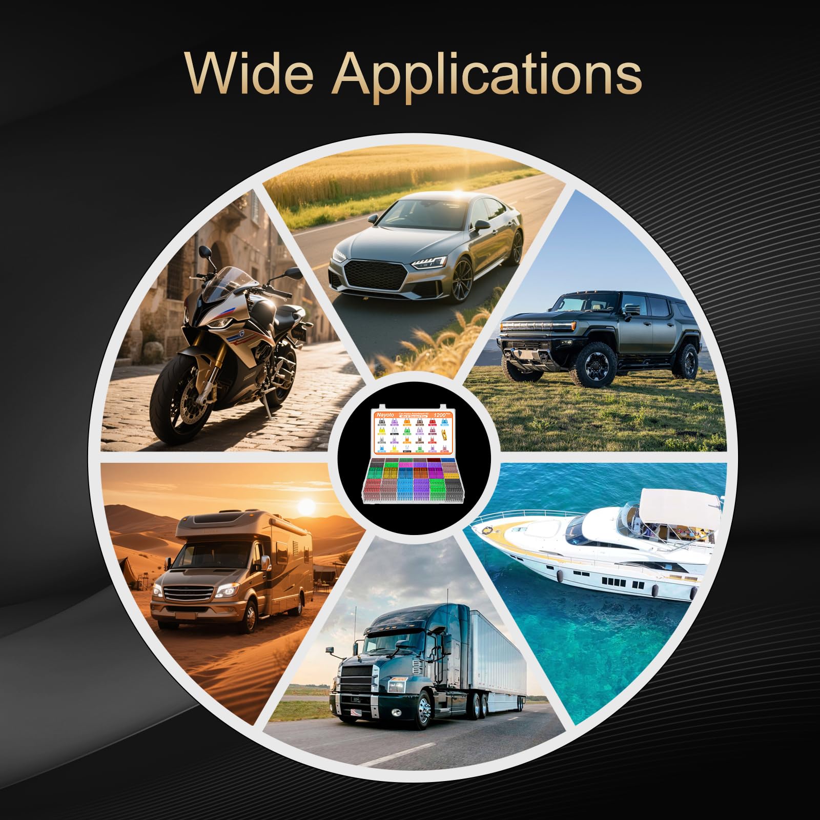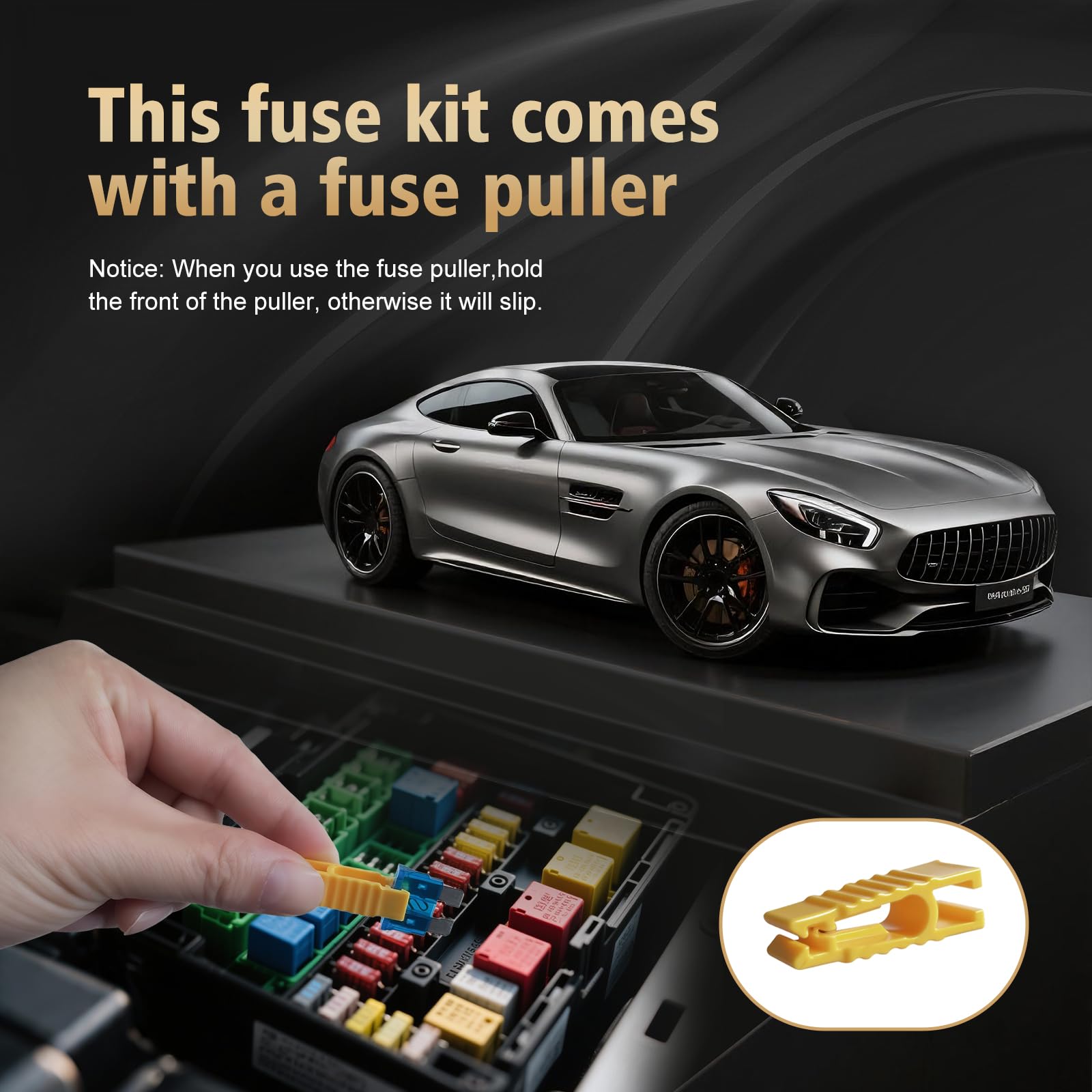 Wide Application: This car fuse kit is suitable for all kinds of vehicles, including cars, SUVs, RVs, trucks,motorcycles and boats, and is a versatile addition to car maintenance tools,Detailed display sticker not included