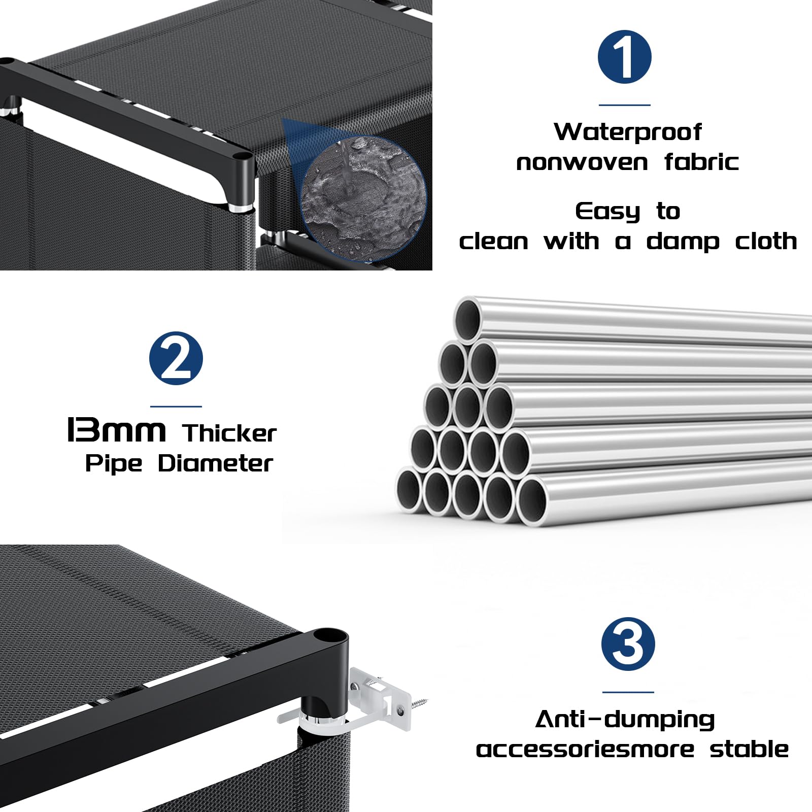 【Several High-quality Materials】:Our products are made of various materials, including metal tubes, ABS plastic compounds, and non-woven fabrics. The combination of these materials is water resistance and easier to clean, while helping you maintain an overall aesthetic. The joint is made of high-quality plastic, which has high stability and is more environmentally friendly.