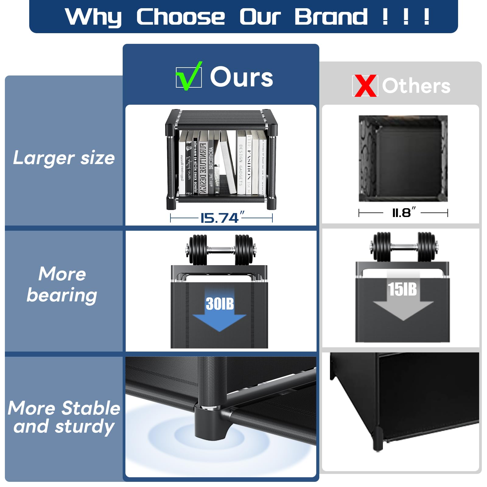 【Large Storage Space】: Each cube size is 15.74" x 11.8" x 11.8" (40 x 30 x 30cm), which is larger than other common sizes(11.8" x 11.8" x 11.8") so you can accommodate more items to improve the tidiness and comfort of your home