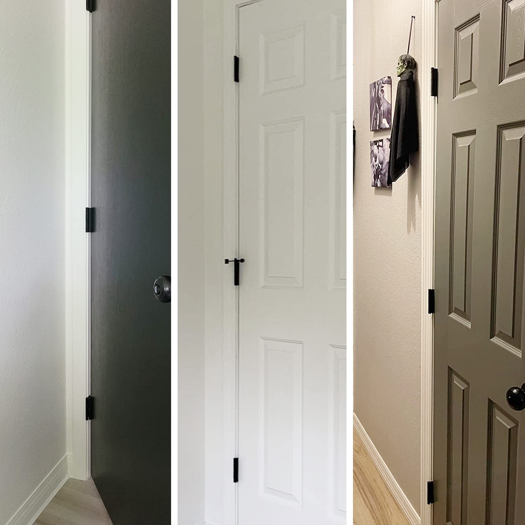 Security House door hinges 3.5 inch suitable for drawer,dresser,wardrobe. Shower,bathroom,bedroom,living room door hinges matte black 3.5.Smooth operating plain bearing hinge.Strong sturdy design make these interior door hinges a long lasting.These door hinges are made of high-quality iron, solid,thick. The Removable Riveted Pin also provides additional convenience.