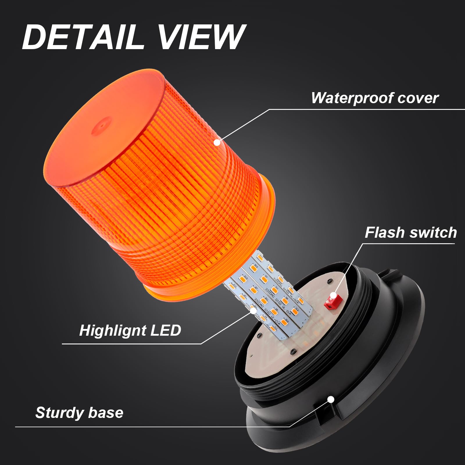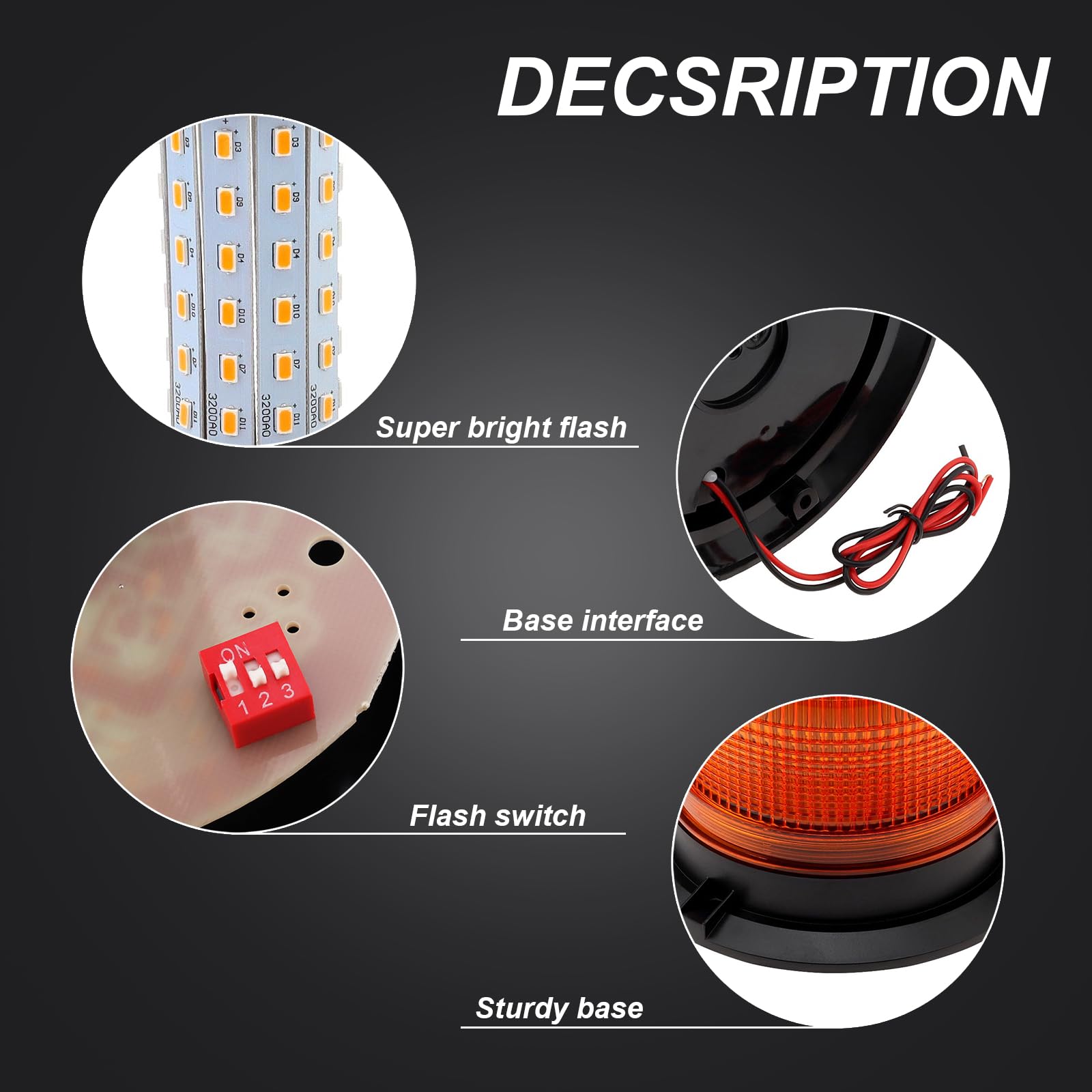 Super Bright Beacon Light: Roof top strobe light use 80 high intensity LED chips, the 360 degree coverage is fully illuminated from all angles to maximize light output and ensure more effective warning of other vehicles. Bright amber beacon lights for vehicles is easily seen in rain, fog and snow, visible during the day and night