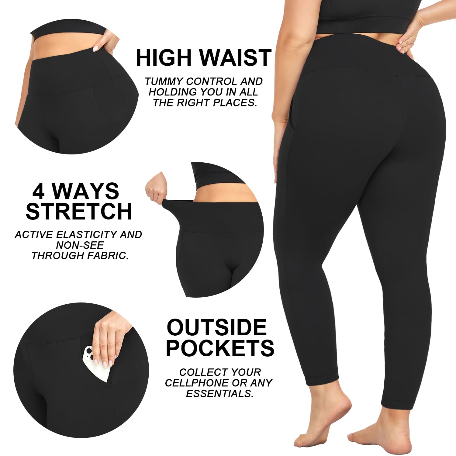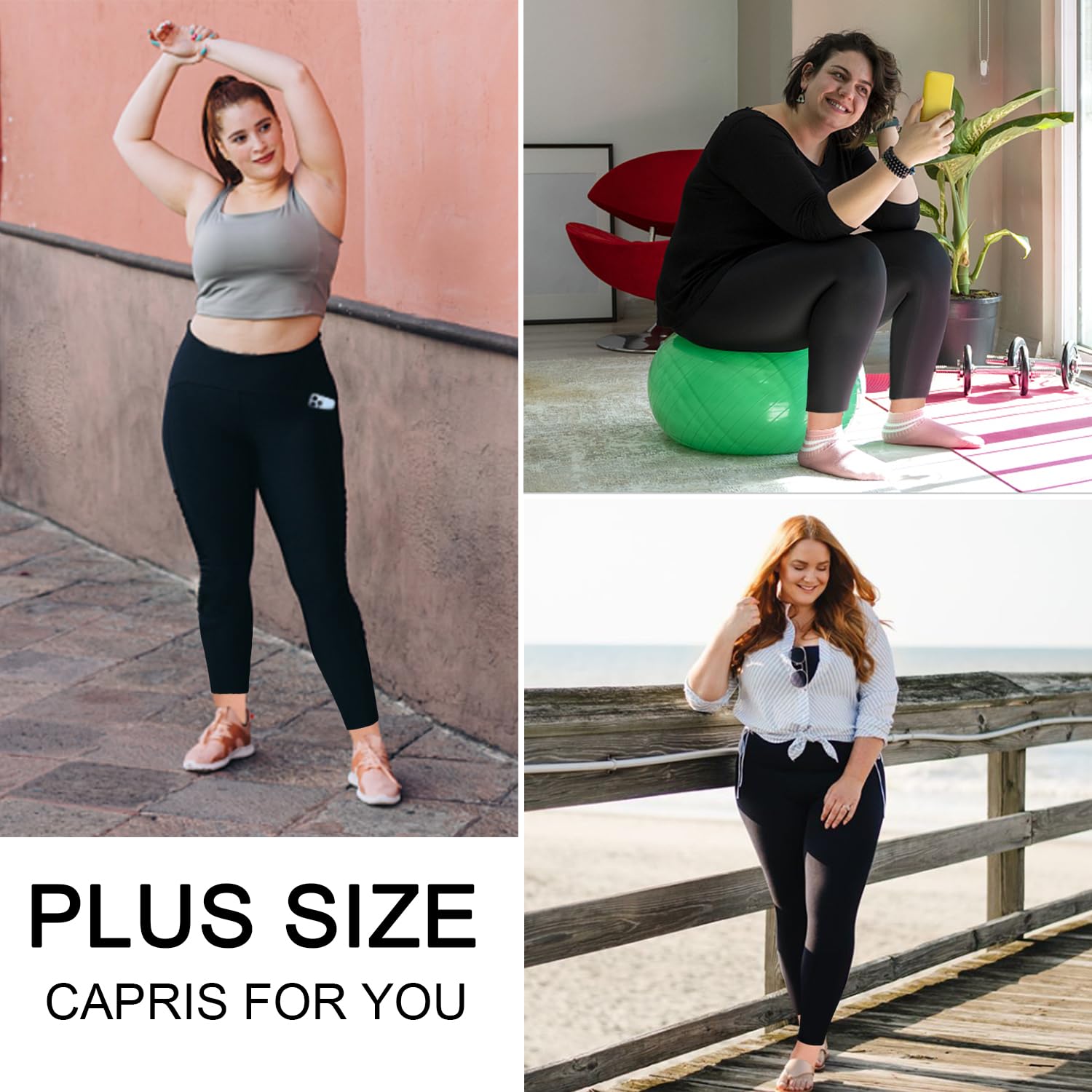 【Smooth Soft】: These plus size capri leggings with pockets are made from 92% polyester and 8% Spandex, craft in Smooth soft, comfortable. When you wear it for daily activities, you will not feel the itching caused by base of thigh or friction at all. Great match with sports bras, vests or t-shirts.