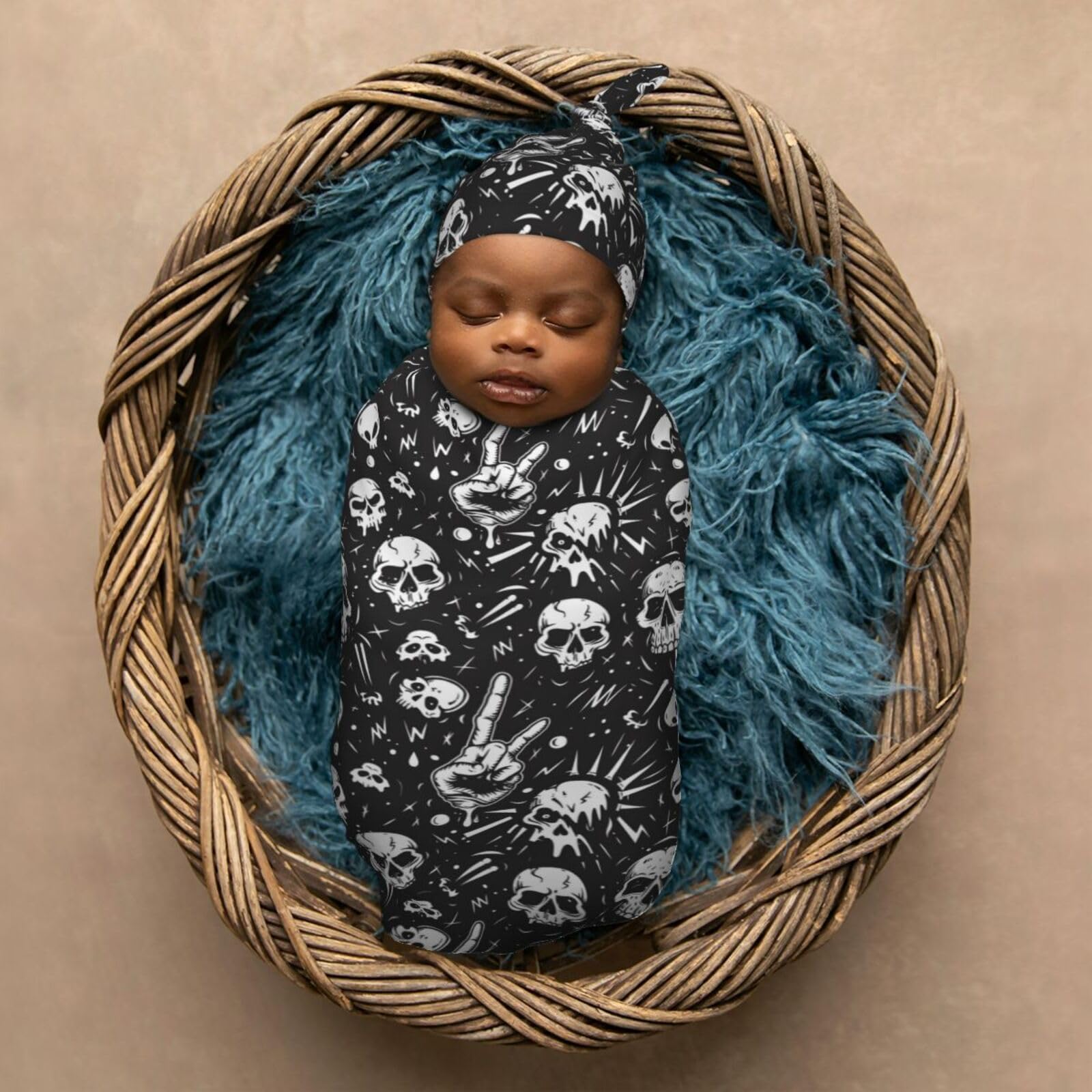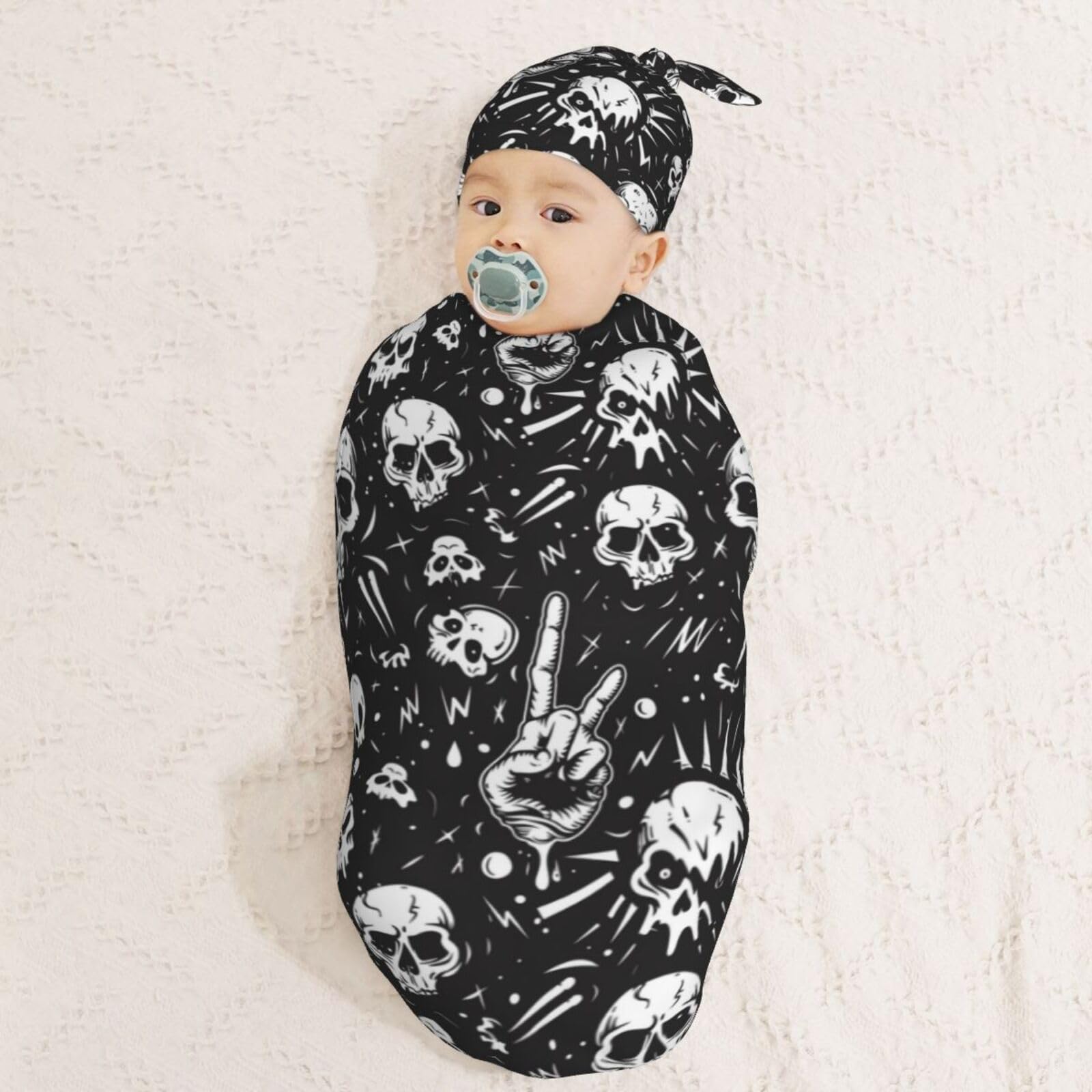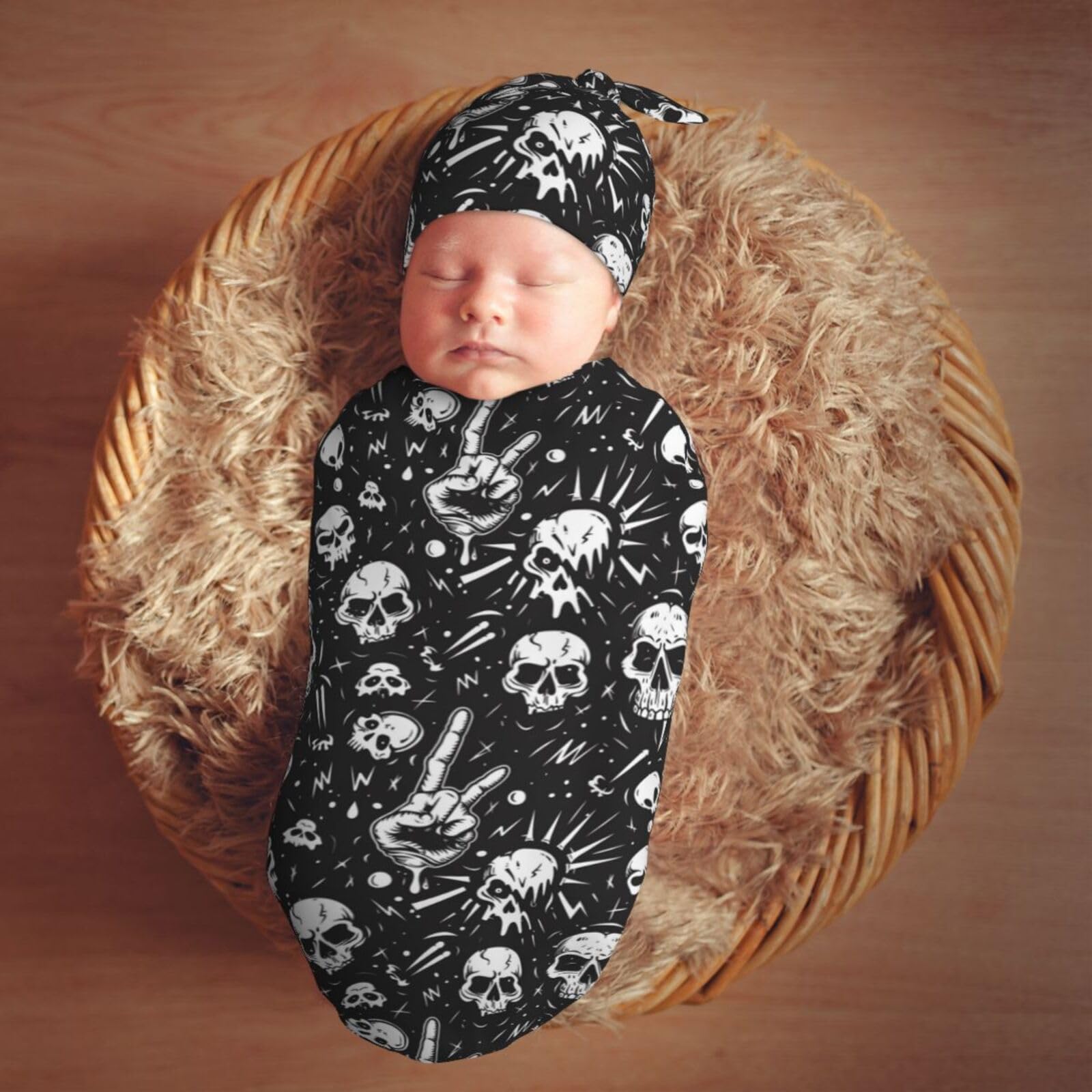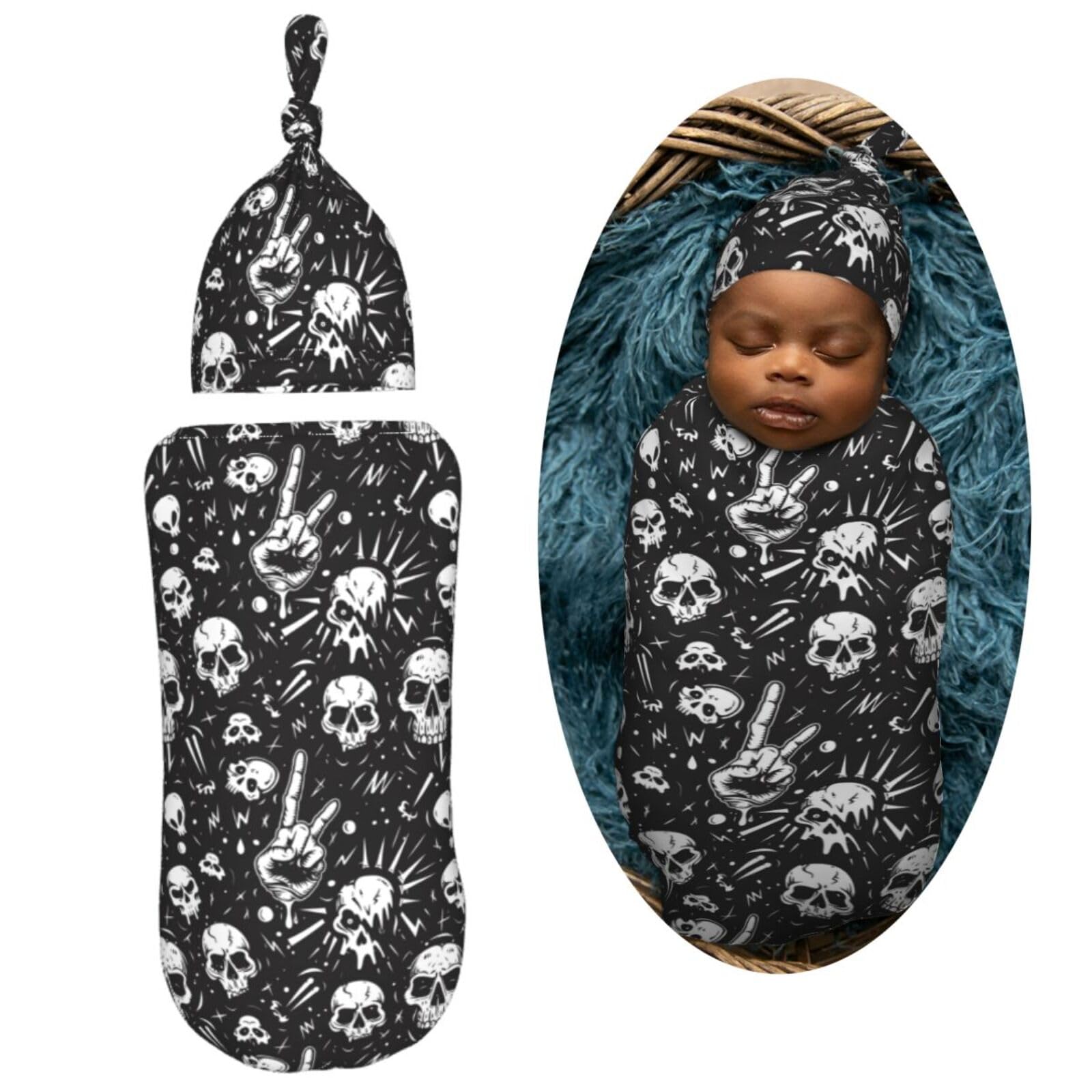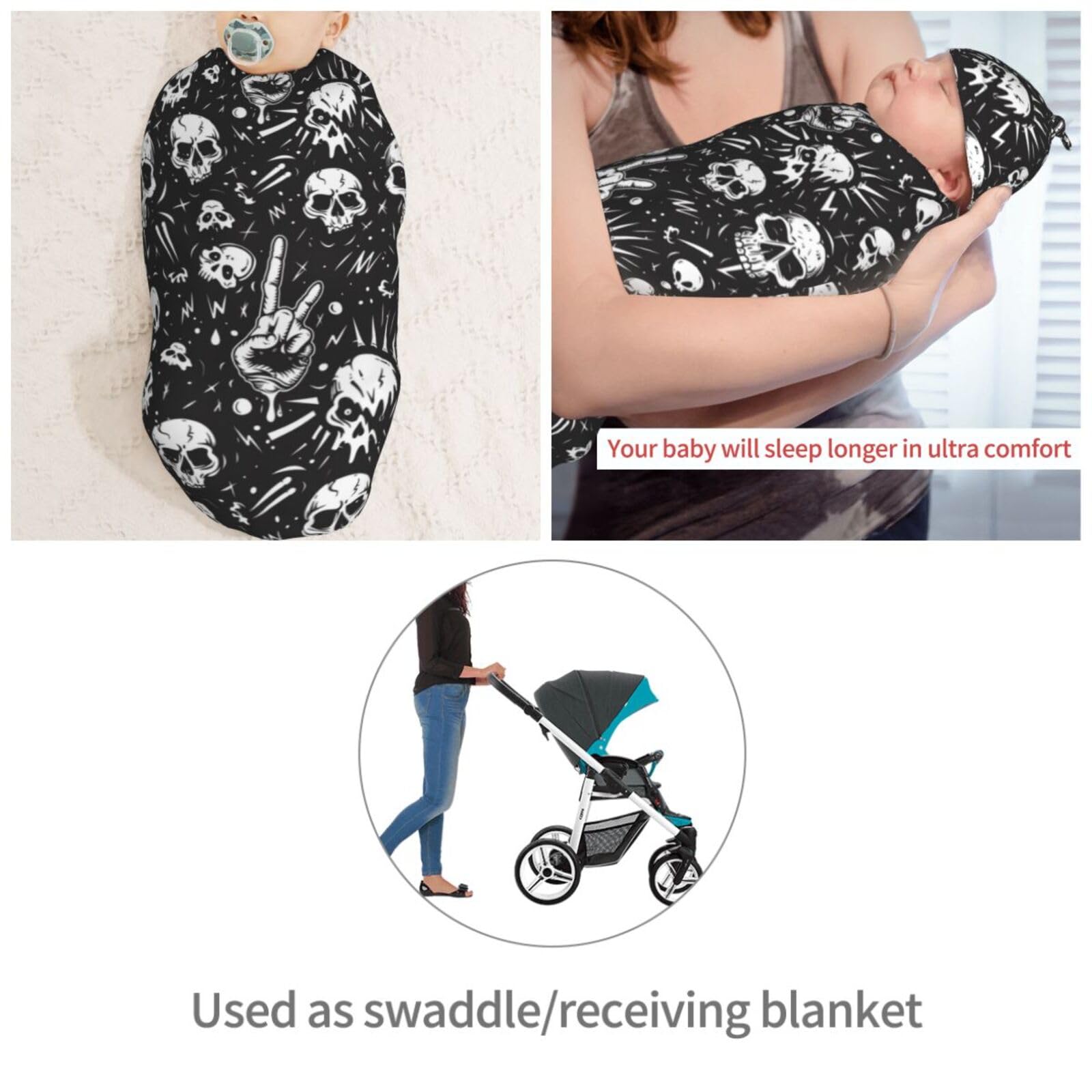 Size: Swaddle Blankets For Baby Boy/Girl Size: 20.8" X 11.4" ; And The Beanie Hat Size: 13"X6.5" . Funny Skull Middle Finger Art Swaddle Blankets Is For 0-6 Month Babies.