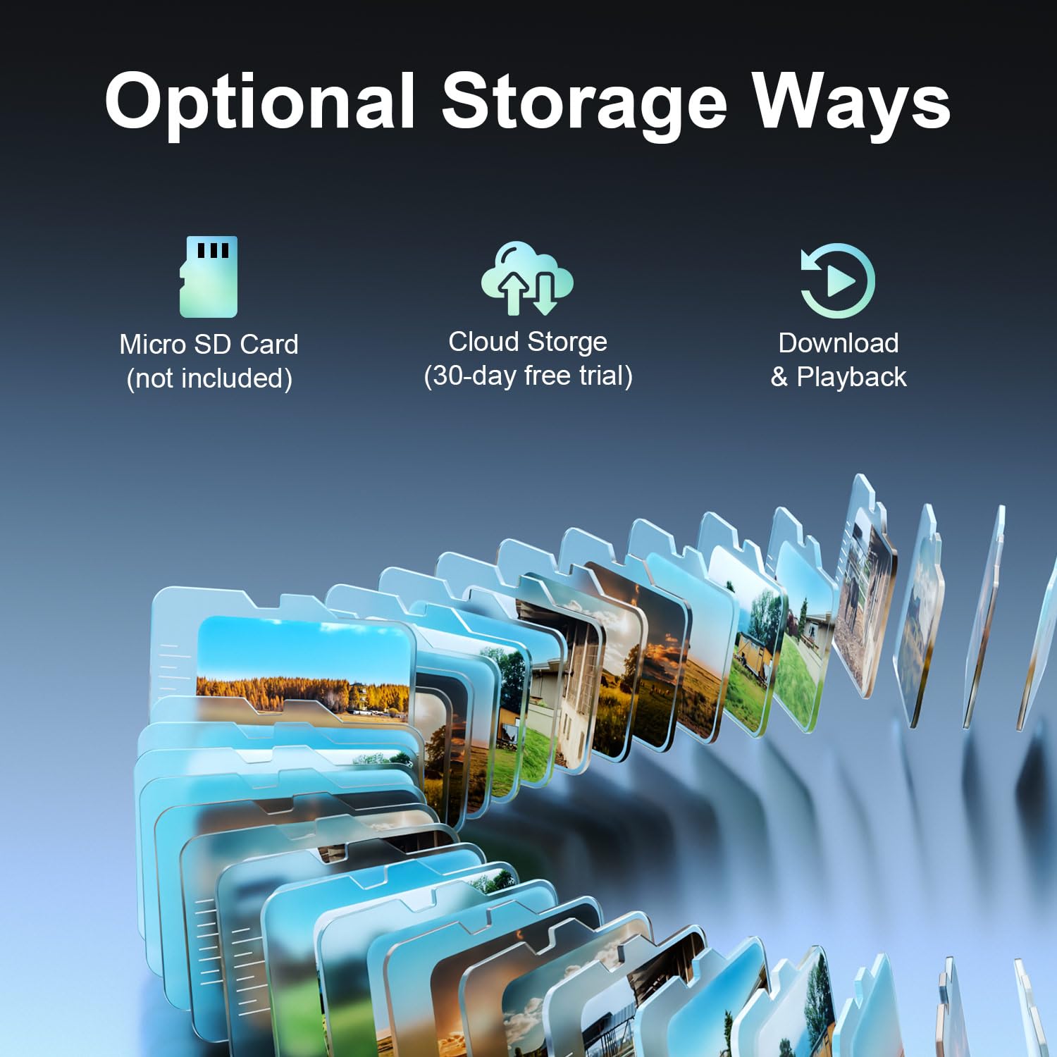Store All Events in Privacy: Once detects motion, the cellular camera outdoor will automatically save encrypted recordings on micro SD card(not included, max 128G) or cloud storage.