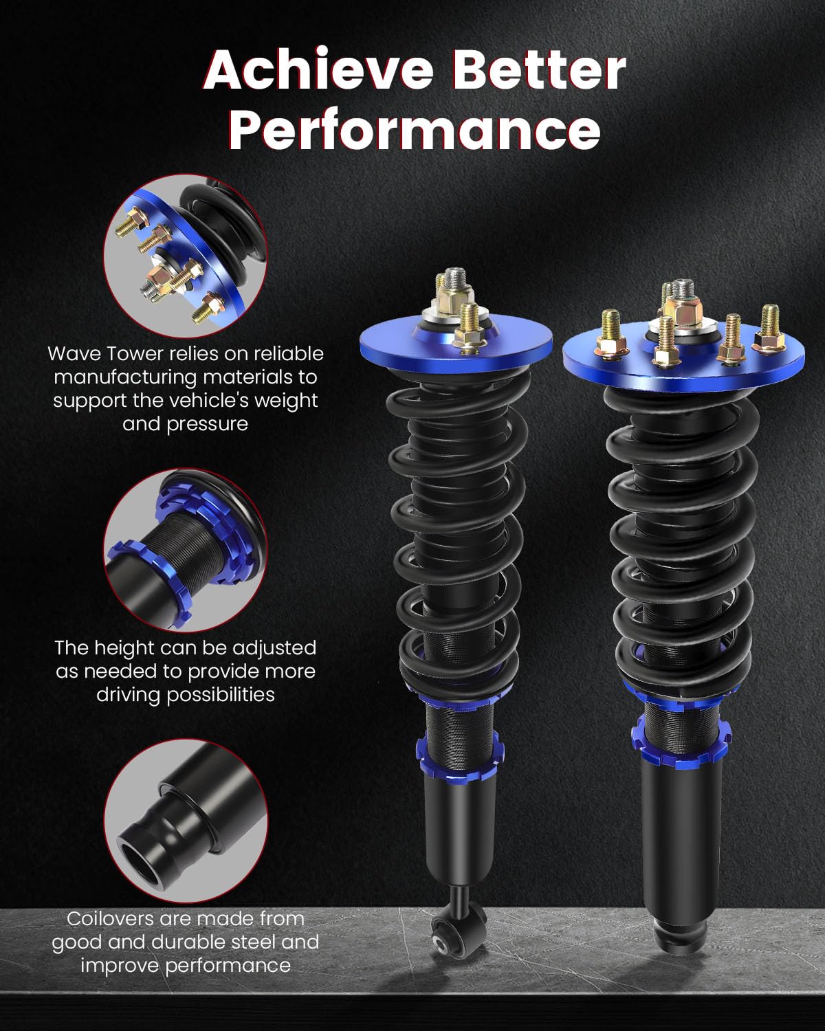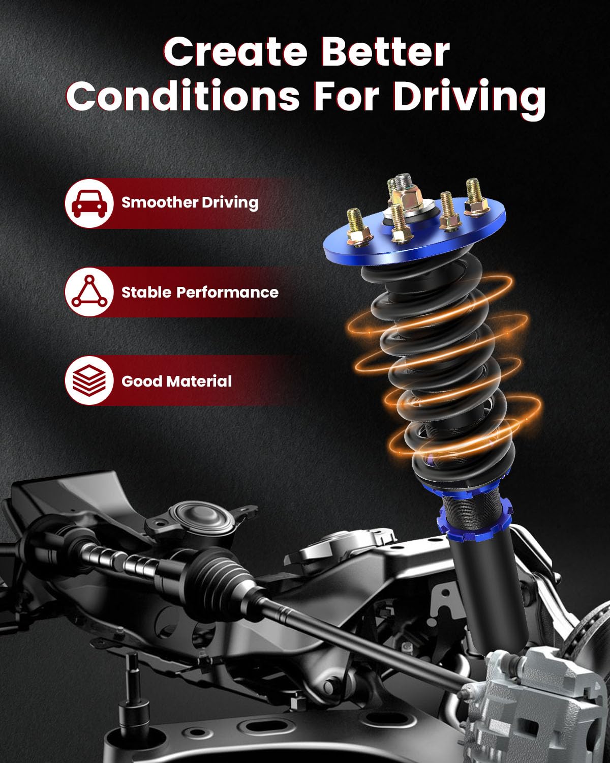 IMPROVE DRIVING QUALITY: The adjustable coilovers has a higher quality than the original shock absorber, which can better filter bumps and improve maneuverability for a more driving experience