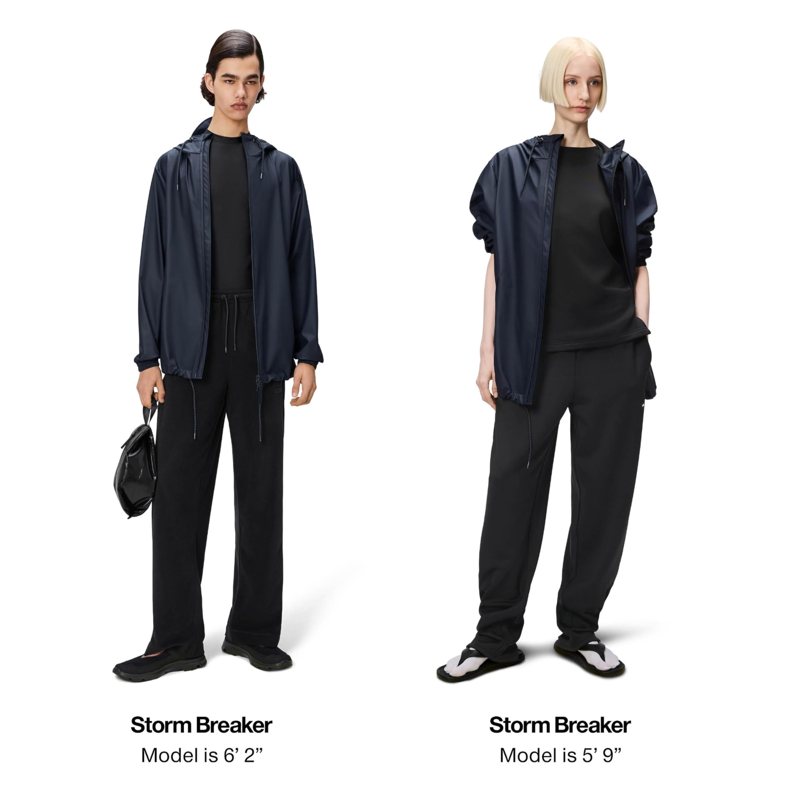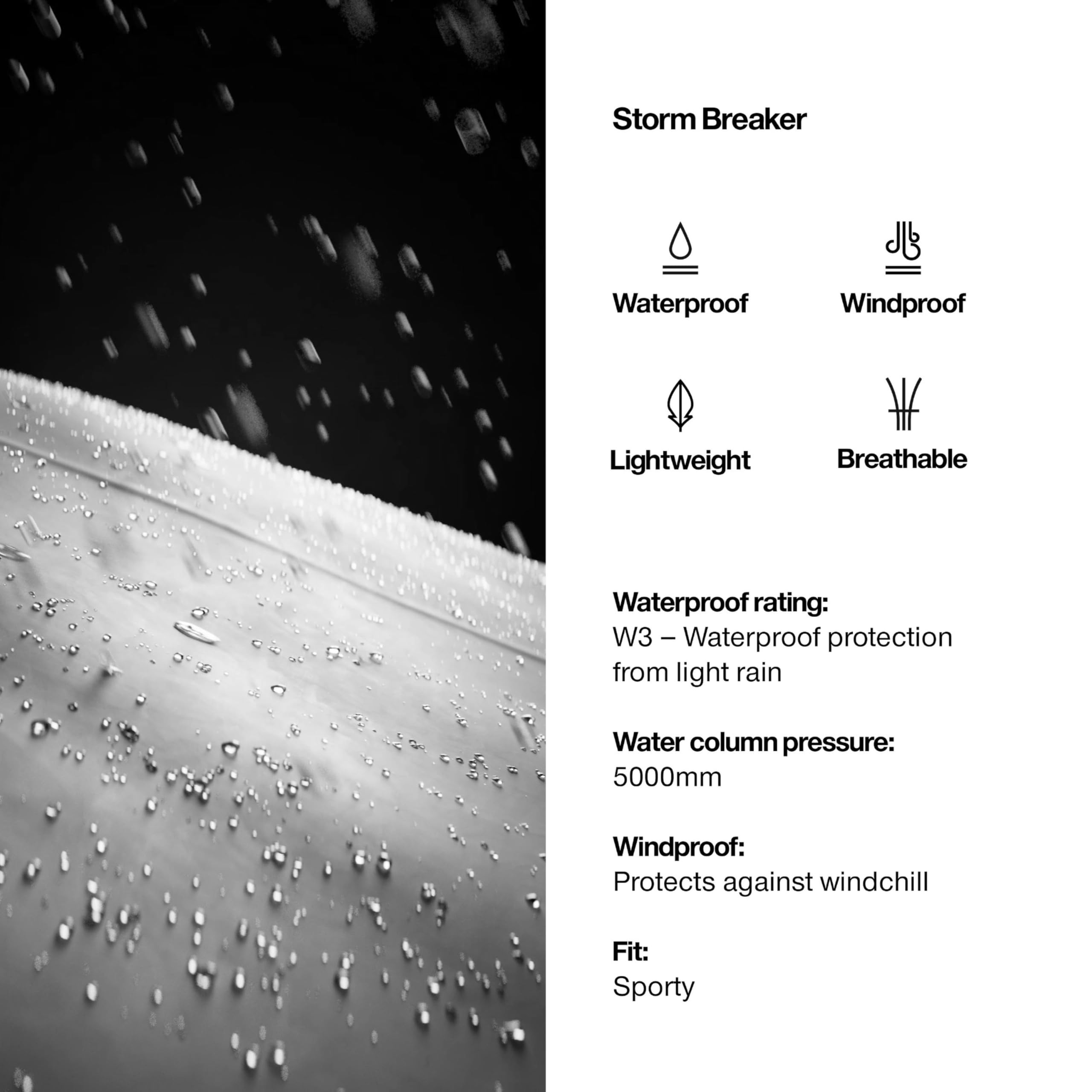 FEATURES: Storm Breaker is a unisex rain jacket with a drawstring hood and cap brim, back yoke with concealed vents, elasticated cuffs, double welded seams, adjustable part-reflective drawstring hem, eyelets in arm holes, and weather-resistant hardware.