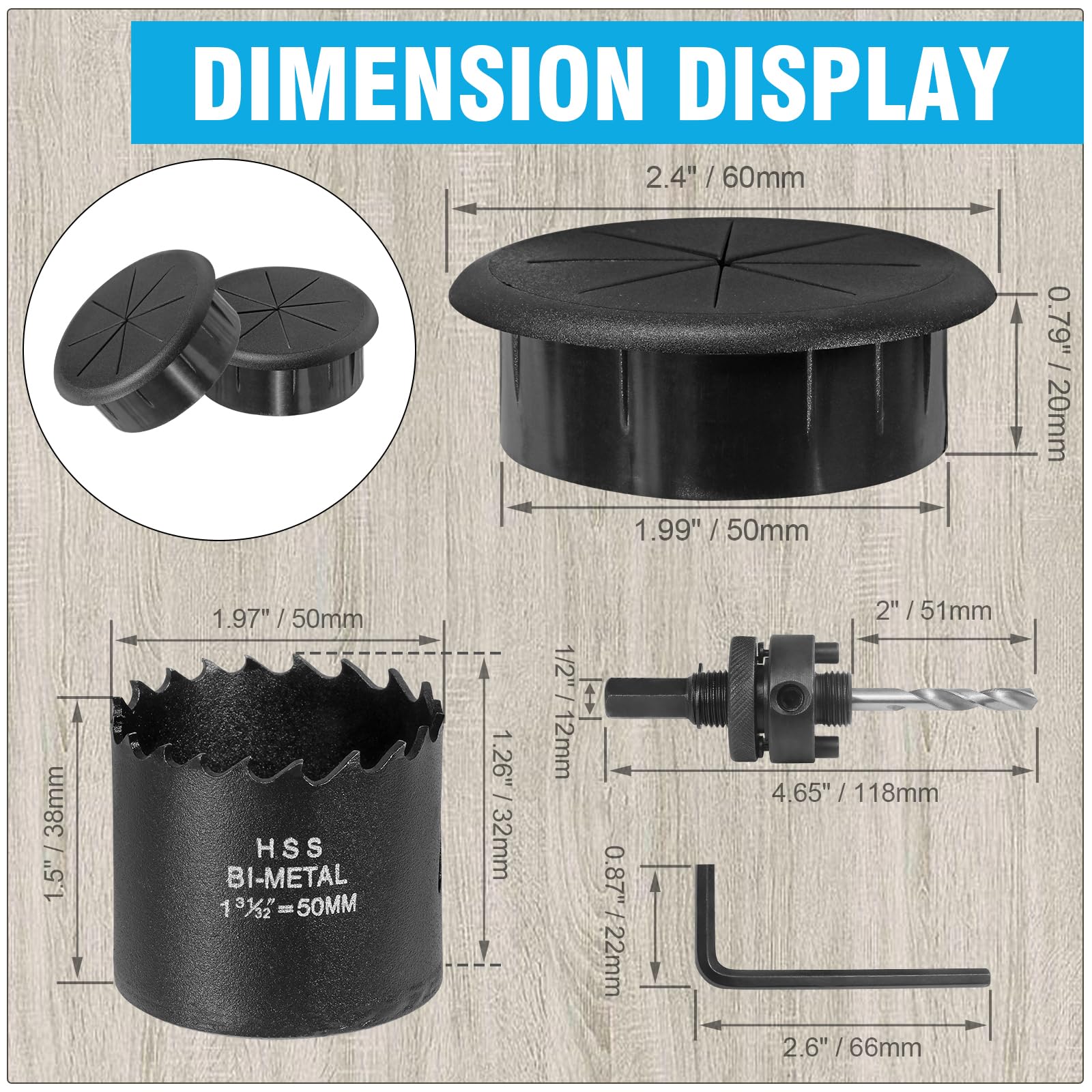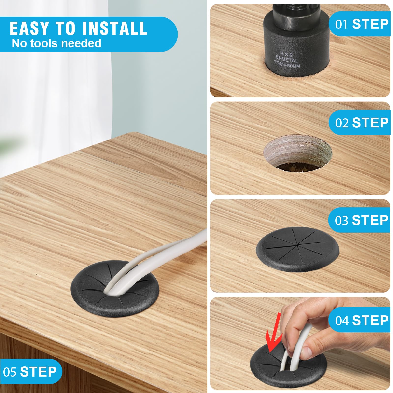 DELIGHTS PACKAGE -- Your package includes 6 x 2" desk grommets, 1 x 2" hole saw. Useful Tips: ① Start by vertically and slowly cutting a slot, ② Maintain even pressure while cutting, and keep your pace slow to avoid damaging the surface, ③ Periodically clean the desk grommet area to prevent accumulation of debris.