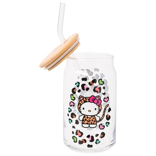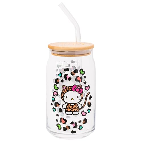 Enjoy your favorite beverages in this adorable tumbler! Glass tumbler features Hello Kitty in the cutest leopard costume. Surrounding the beloved character are colorful leopard spots. Design is featured on both sides. HAND WASH ONLY. NOT microwave safe. This glass tumbler holds up to 16 ounces of your favorite beverage. Complete with a secure bamboo lid and reusable glass straw, this is the perfect cup to keep you hydrated while on the go. This kawaii tumbler features Hello Kitty in the cutest outfit, making it a great gift for birthdays, holidays, and other events. Take a dive into the fictional world with Silver Buffalo! Silver Buffalo provides fans with official merchandise from their favorite characters. Working alongside licensors and brands, we create unique and imaginative products which are designed with great care and detail. Silver Buffalo aims to connect fans to their favorite cartoon characters, superheroes, movies, tv-series, and more. Celebrate your fandom!