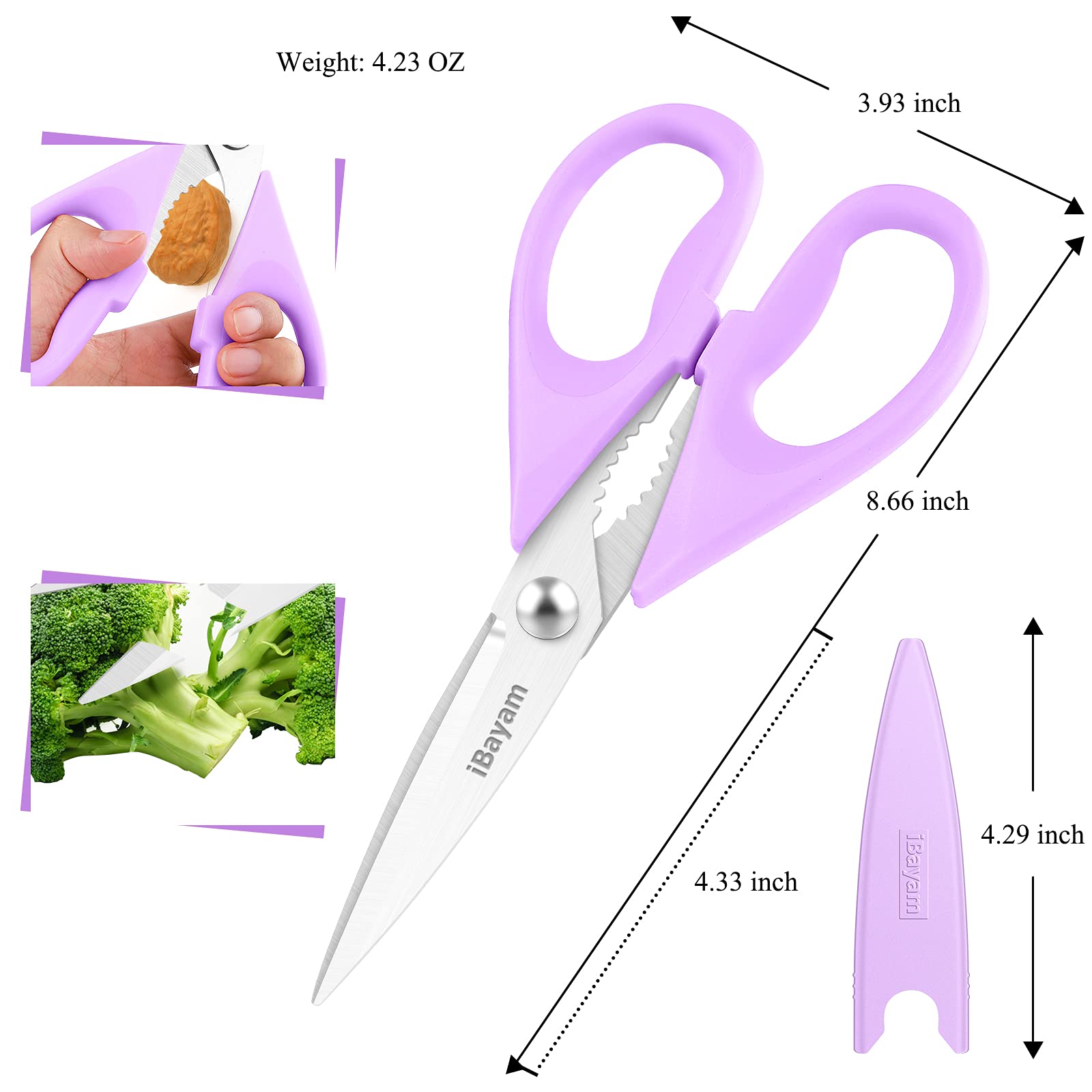 VERSATILE COLORFUL kitchen scissors, Pastel Pink, Soft Purple. Different color handles can be used in different places, 2 special scissors are suitable for most items that need to be cut, worth looking forward to multiple uses around the home. It can also be used as a household scissors for all kinds of fruit, noodles and pizza.