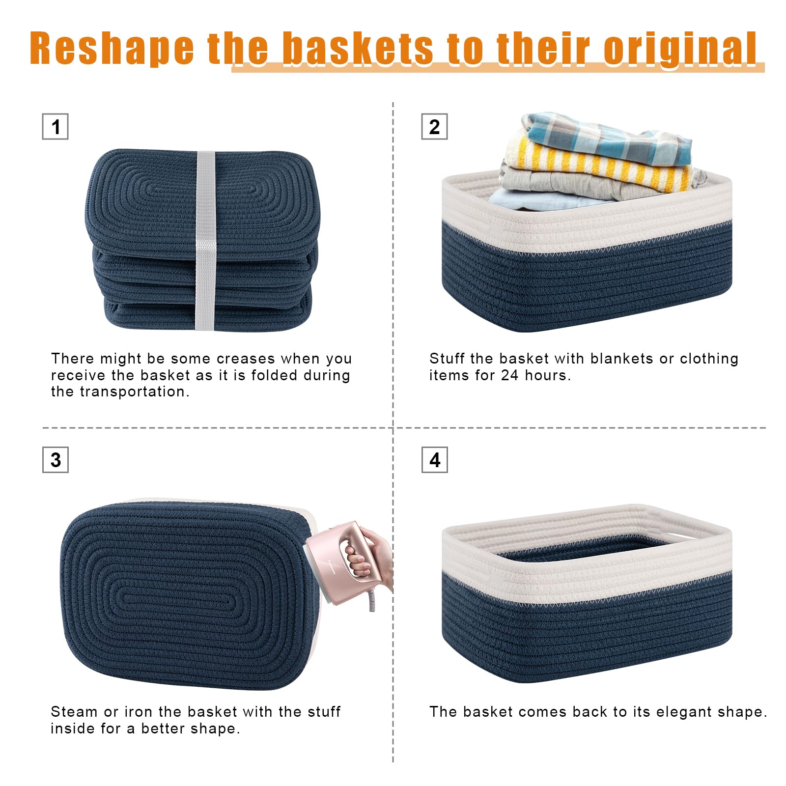 Note: OIAHOMY organizer baskets are folded for shipping. It will turn back to its elegant shape quickly by filling it with towels or blankets, and ironing is a great idea to regain the creases. Also, you can fold it into a flat shape for easy storage when not in use