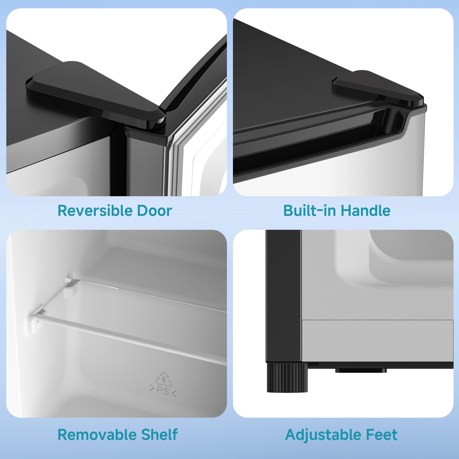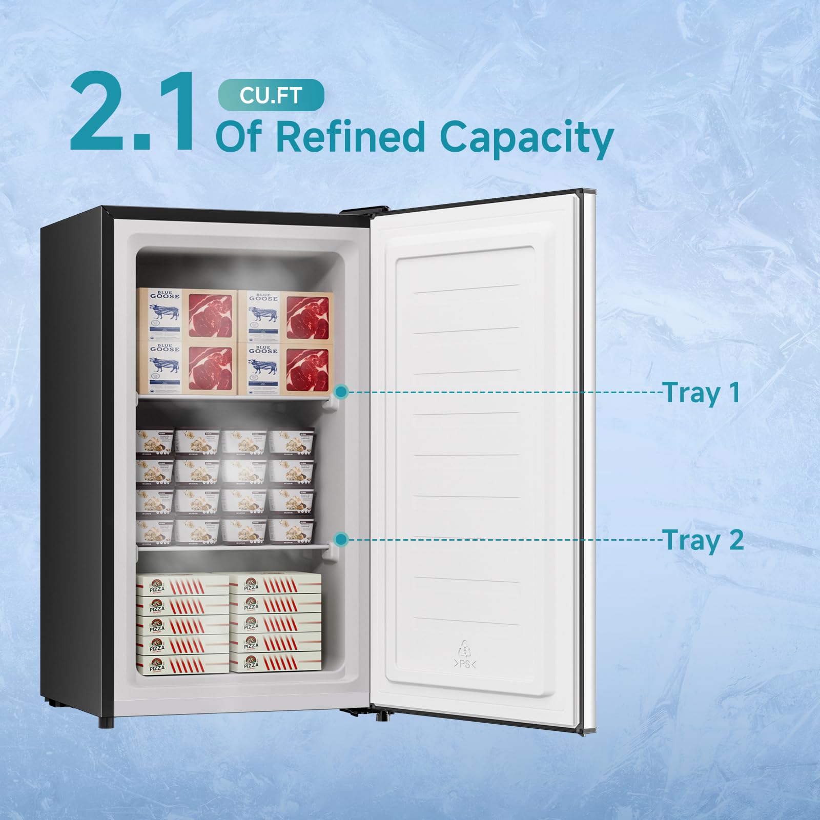 Compact Freezer Dimension: The 2.1 cubic feet freezer, measuring 17.72 inches W, 16.93 inches D, and 30.79 inches H, is designed to save space while conveniently storing items. The compact size is ideal for 2–3 families or dorm workplaces. You can remove the inner shelf based on the height of the meal.
