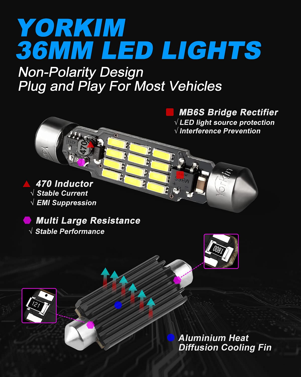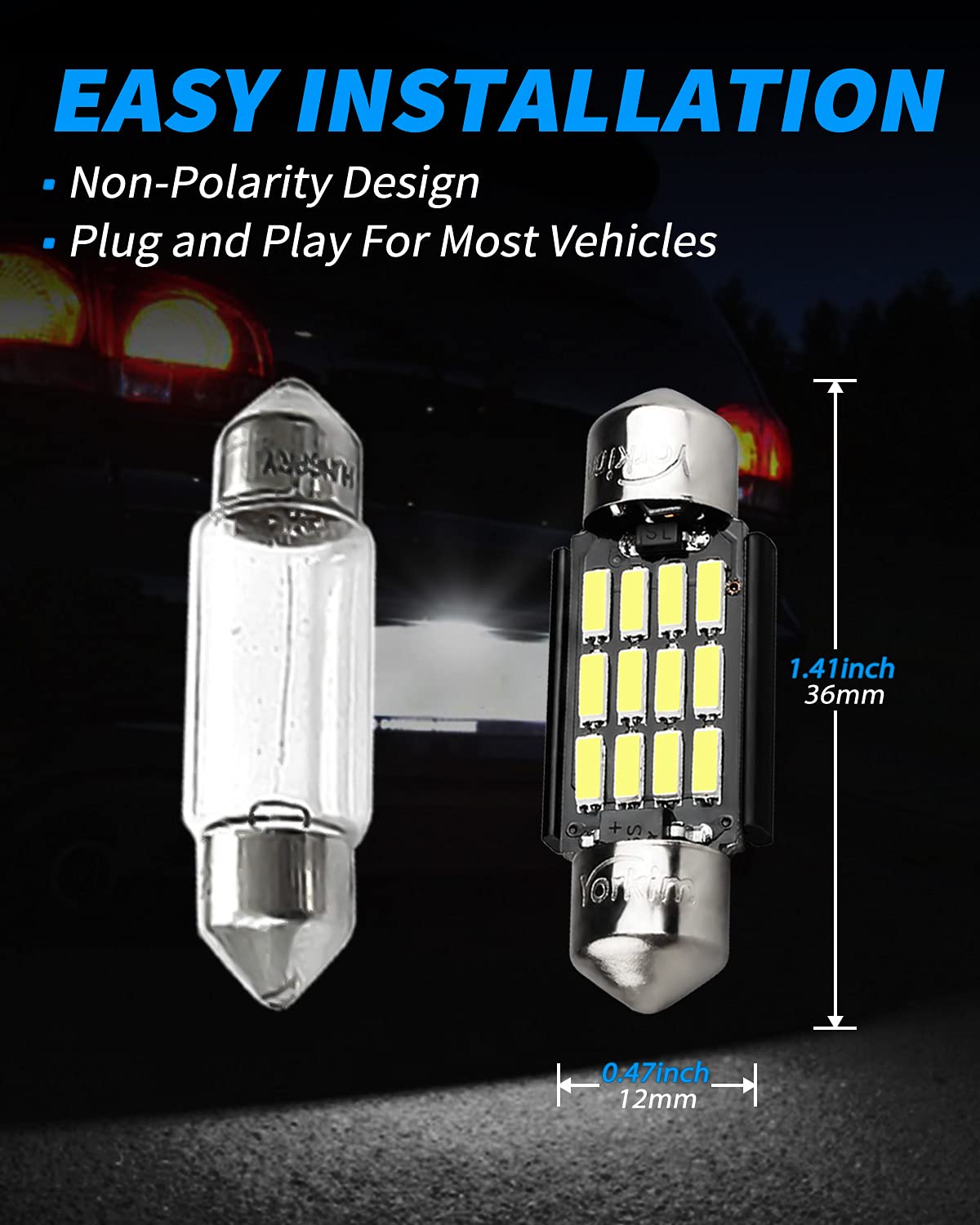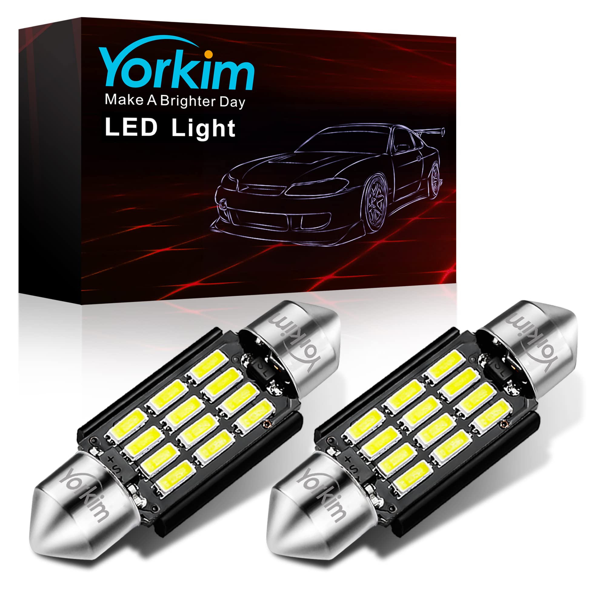 【ULTRA BRIGHT】 – Yorkim 36mm LED Bulbs pack of 2, each bulb uses 12 x 4014 super bright SMD chipsets, offers a brighter and modern look to your vehicle. 3 sizes to choose from: 31mm, 36mm, 41mm