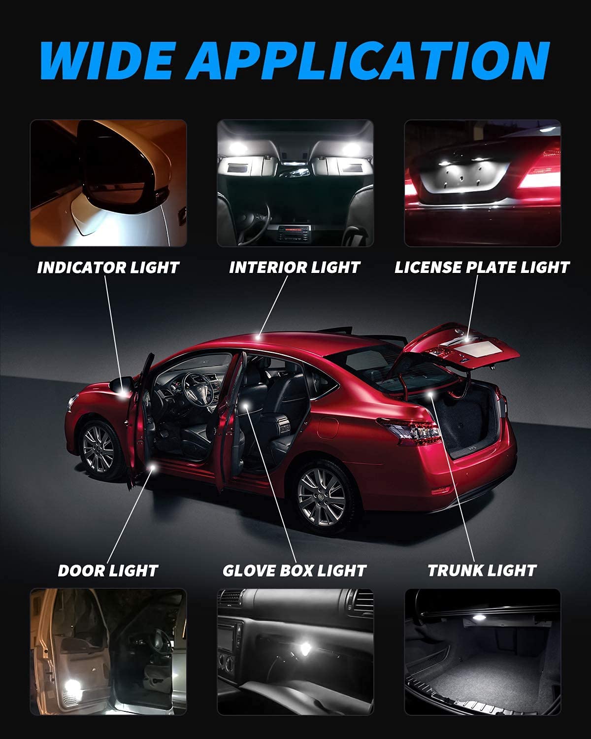 【WIDE APPLICATION】 - 6418 LED White, 400 Lumens, 12V AC. The 36mm Festoon LED Bulbs can be used as led interior car lights, led license plate lights, led interior map lights, led dome lights, led reading lights, dash board lights, side door courtesy lights, glove box lights, trunk cargo lights, instrument lamp door lights etc.