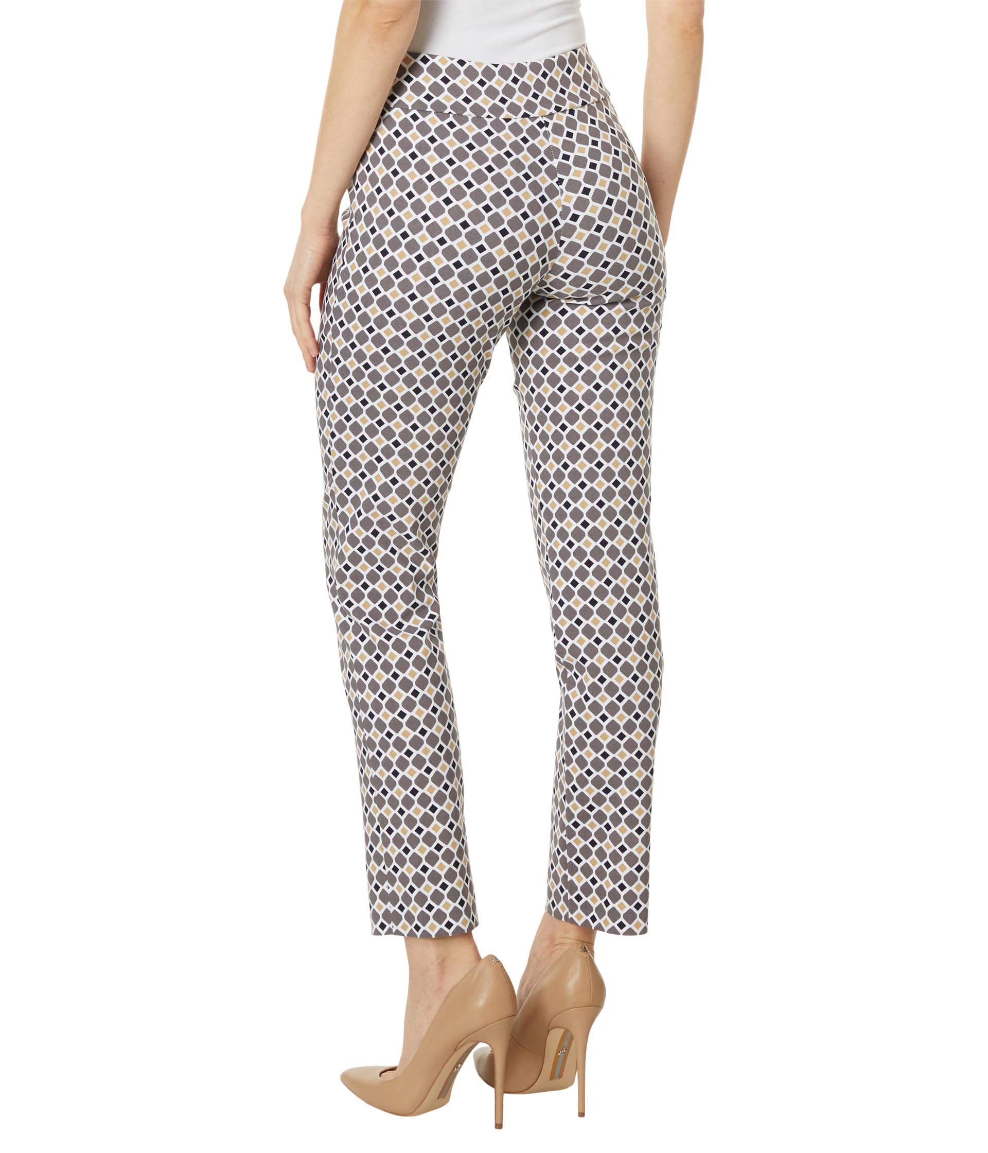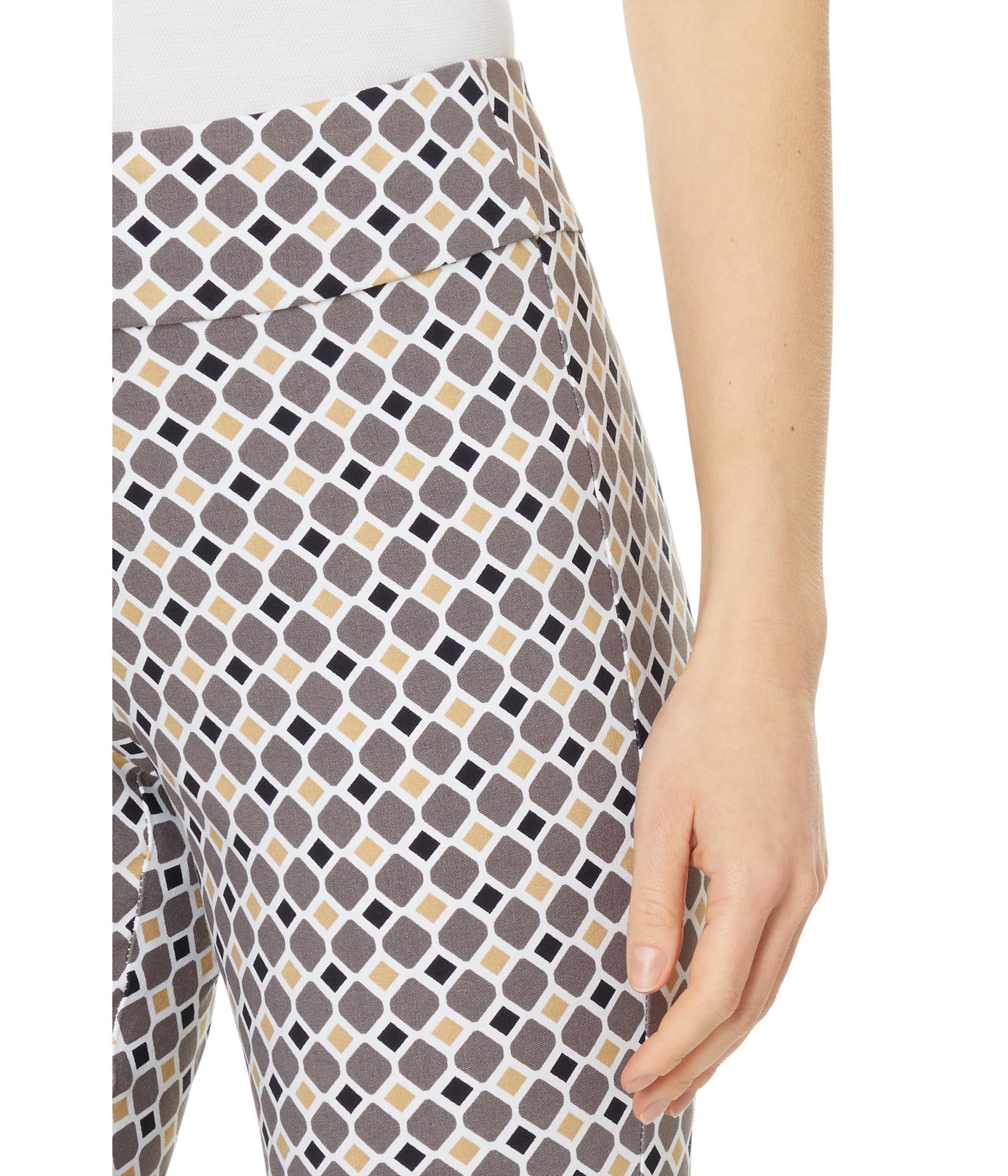Dressy figure-flattering pant boasts a smooth blend of nylon and rayon with spandex for a smidgen of stretch.