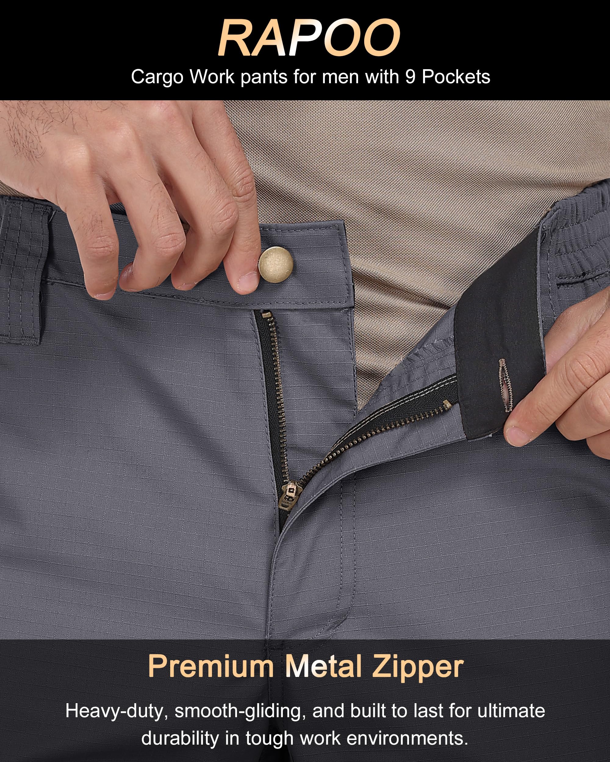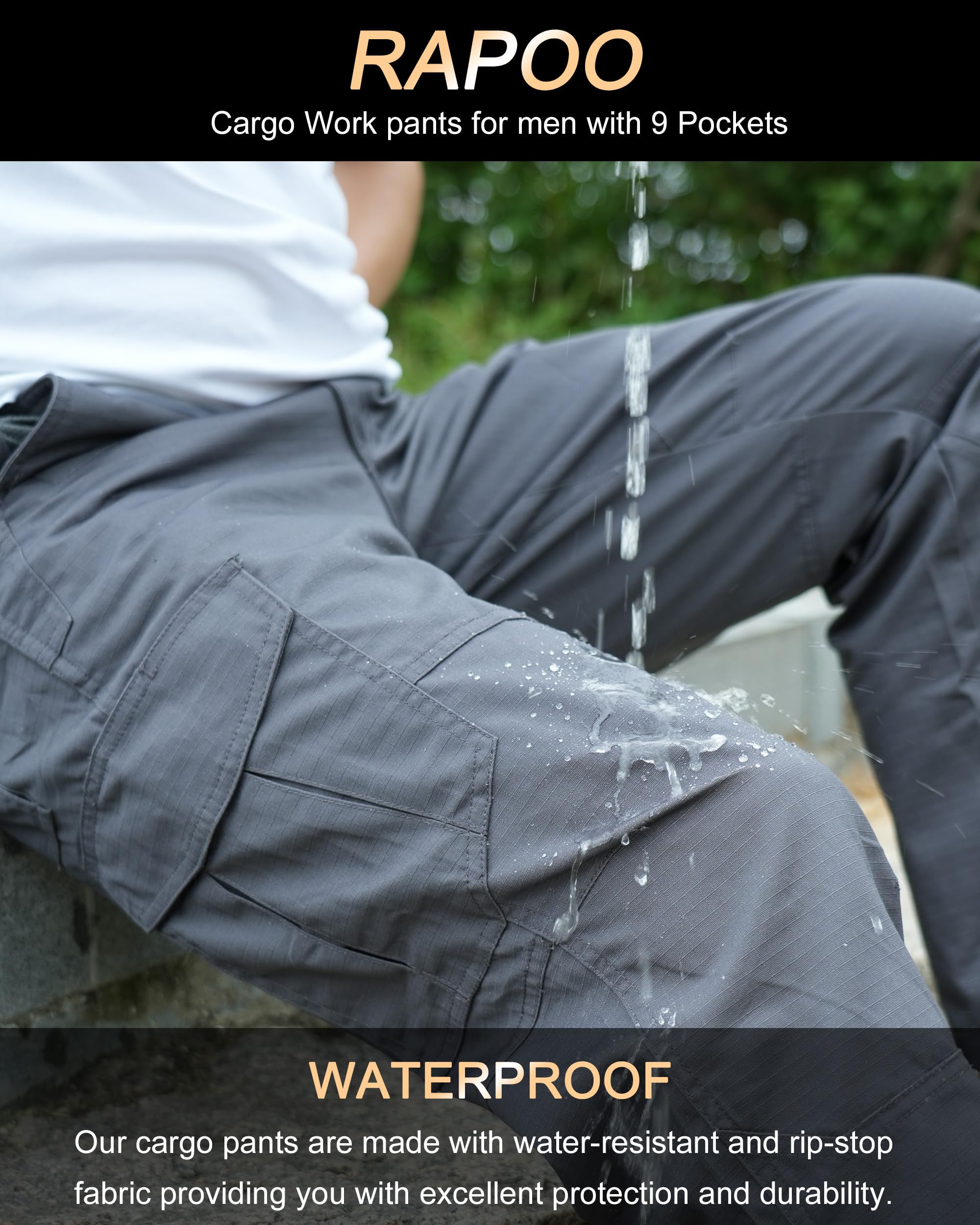 Ripstop Fabric -- Rapoo work pants are made with ripstop fabric that has been treated with a Great Water Repellent treatment, ensuring that you stay dry throughout the day. They are designed to be breathable, scratch resistant, wear resisting, water resistant, durable, anti wrinkle, anti fading, comfortable, and flexible.