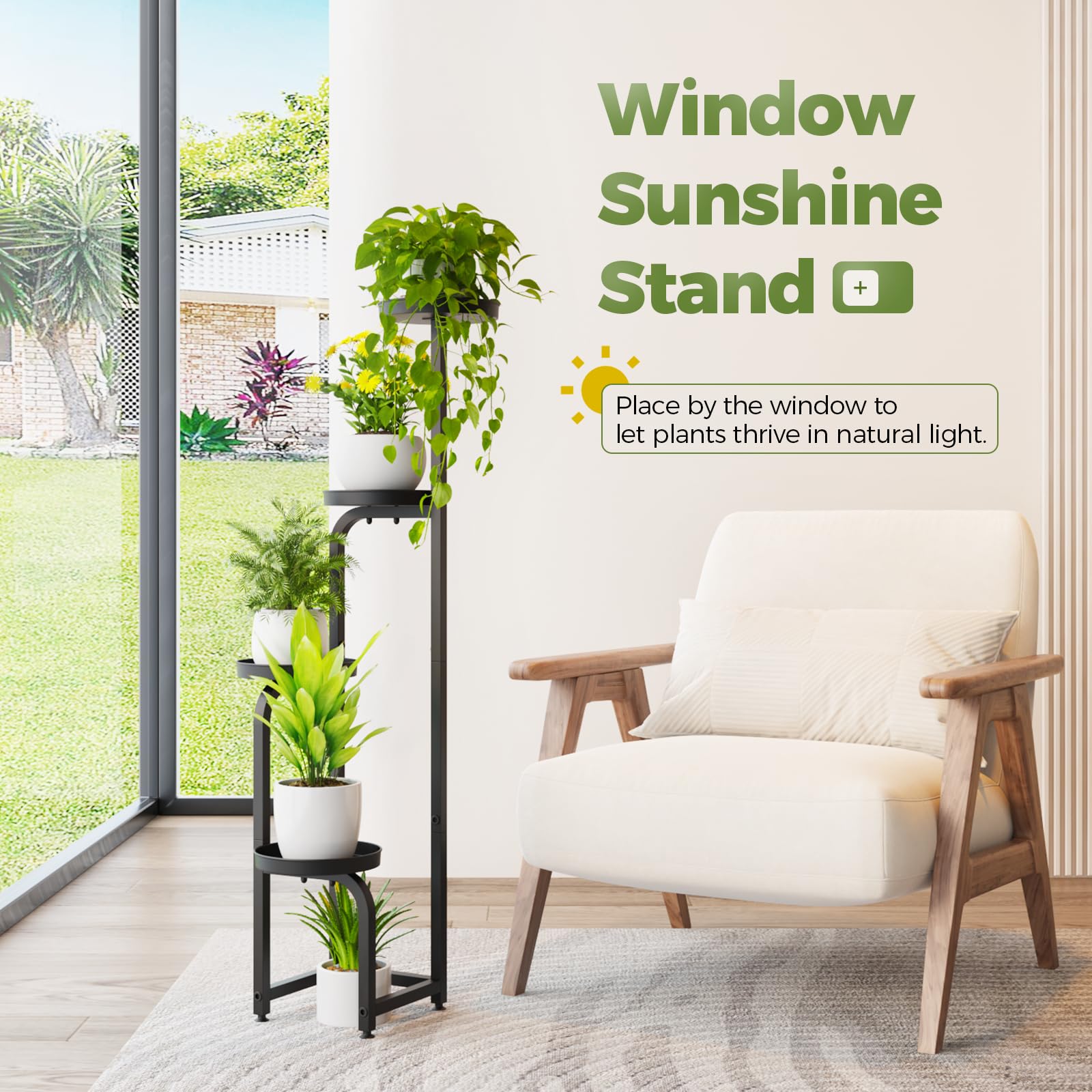 Spiral Structure: With a four-tiered, staggered design, each plant receives optimal sunlight; perfect for showcasing your plants in a living room decor setting or as a tiered plant stand