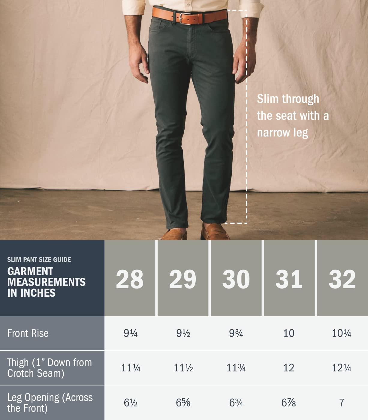 FIND THE RIGHT FIT: Flint and Tinder’s Tapered Fit is made for the guy with a fuller seat and thigh (AKA this guy doesn’t skip leg day) with a narrow tapered leg. The 365 Pant - Tapered uses standard sizing, so order your normal jean or pant size