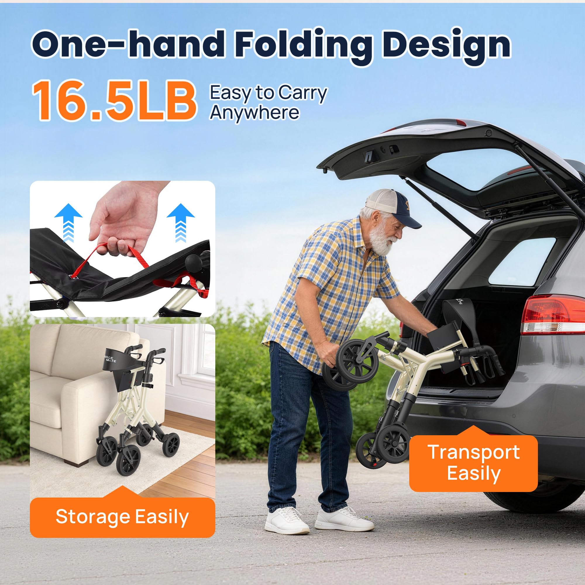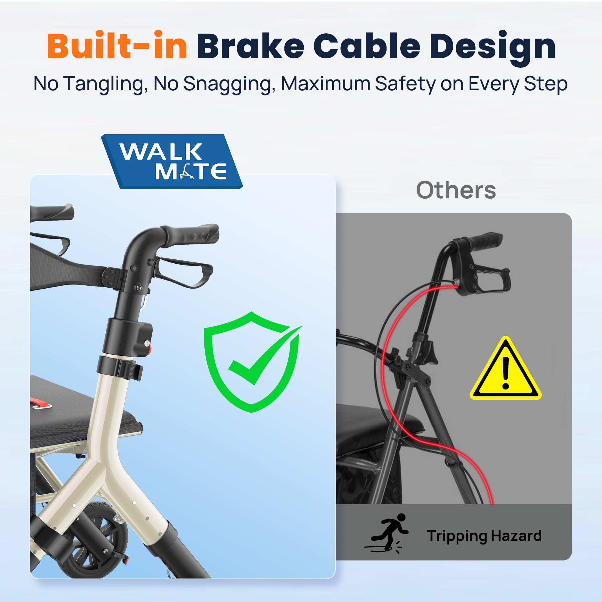 【Wire-hidden & Compact Design】The brake cables have been hidden inside the frame for a more streamlined look, increase advanced safety and durability. Our Rollator walker is convenient for the elderly pass through any narrow space and can fit into most trunks for transport.