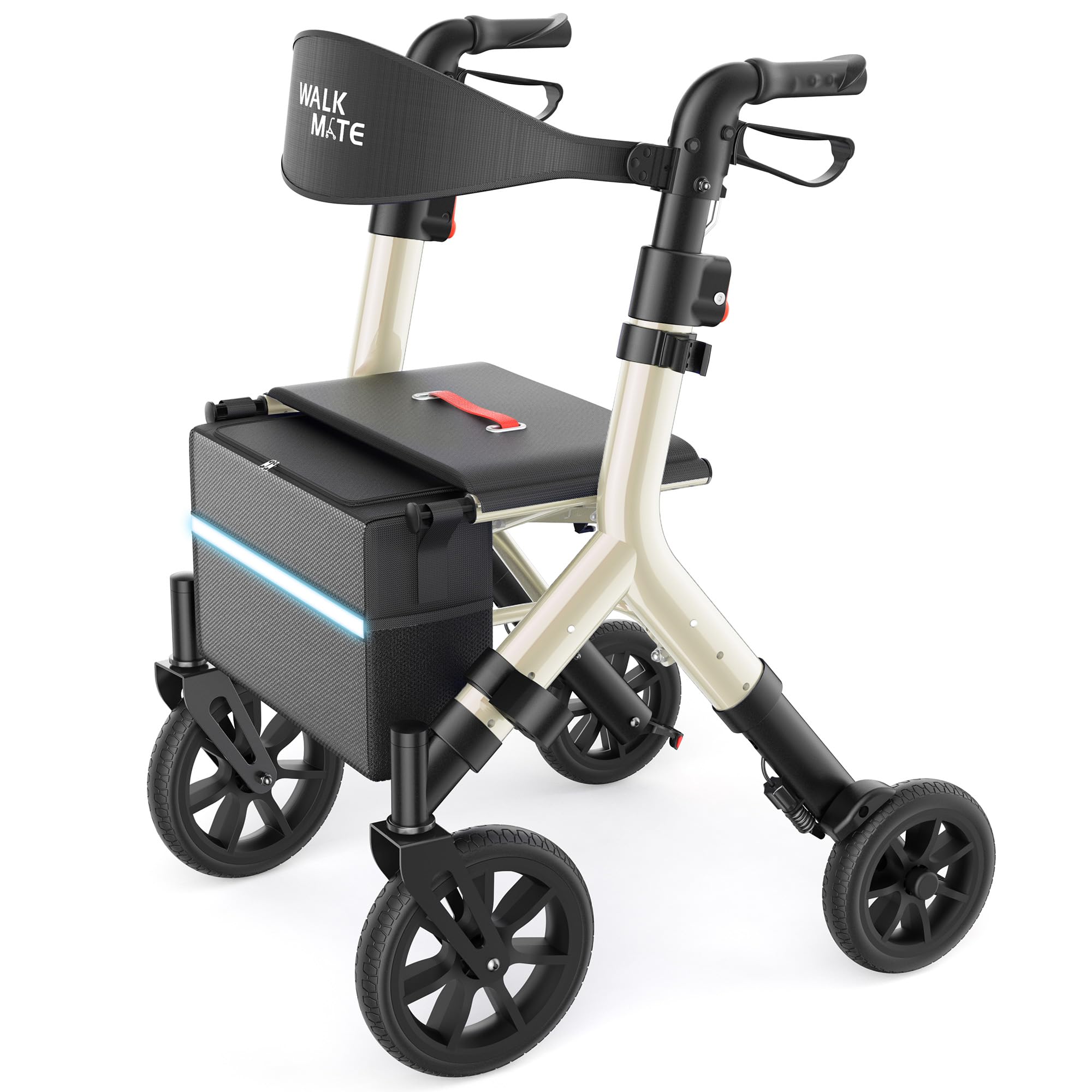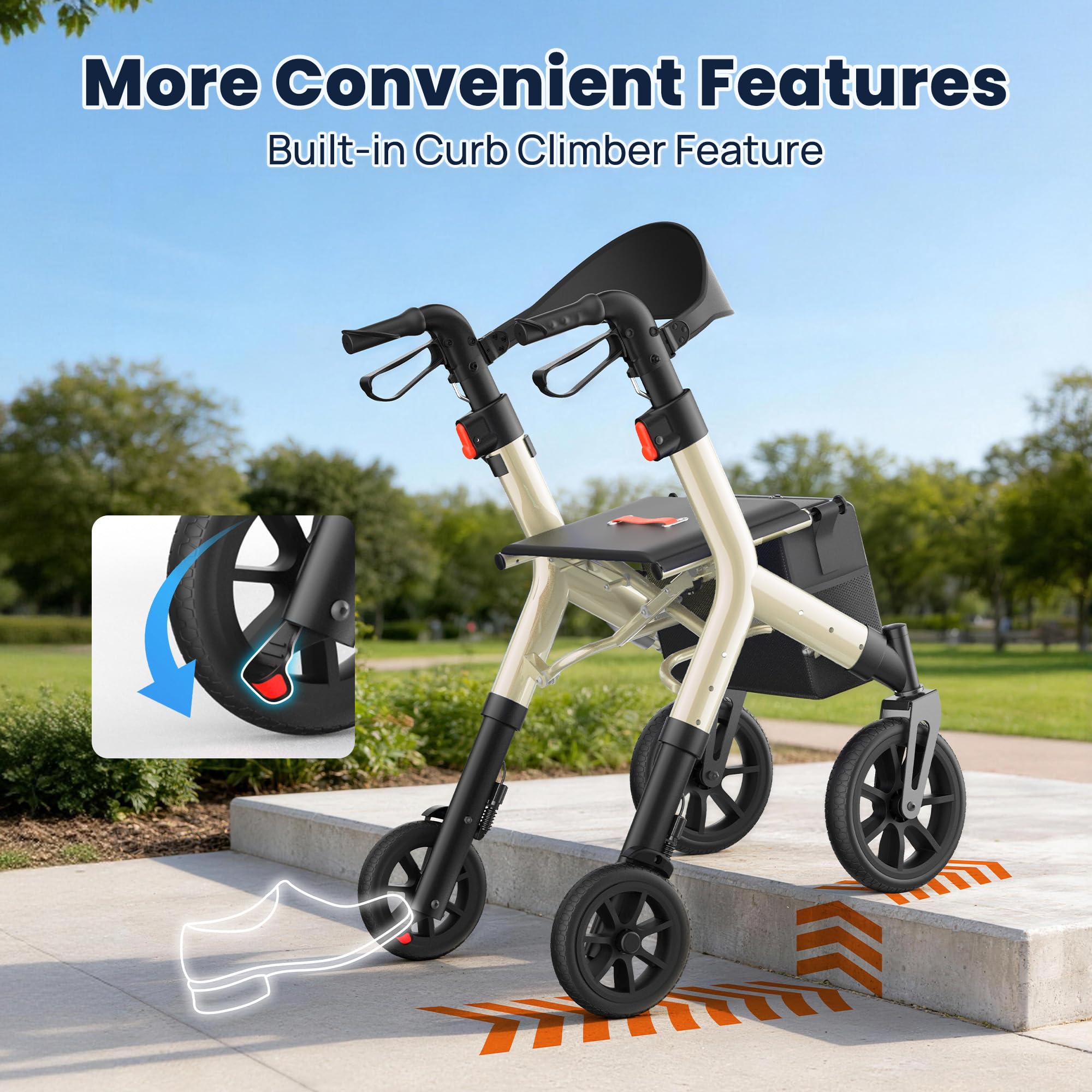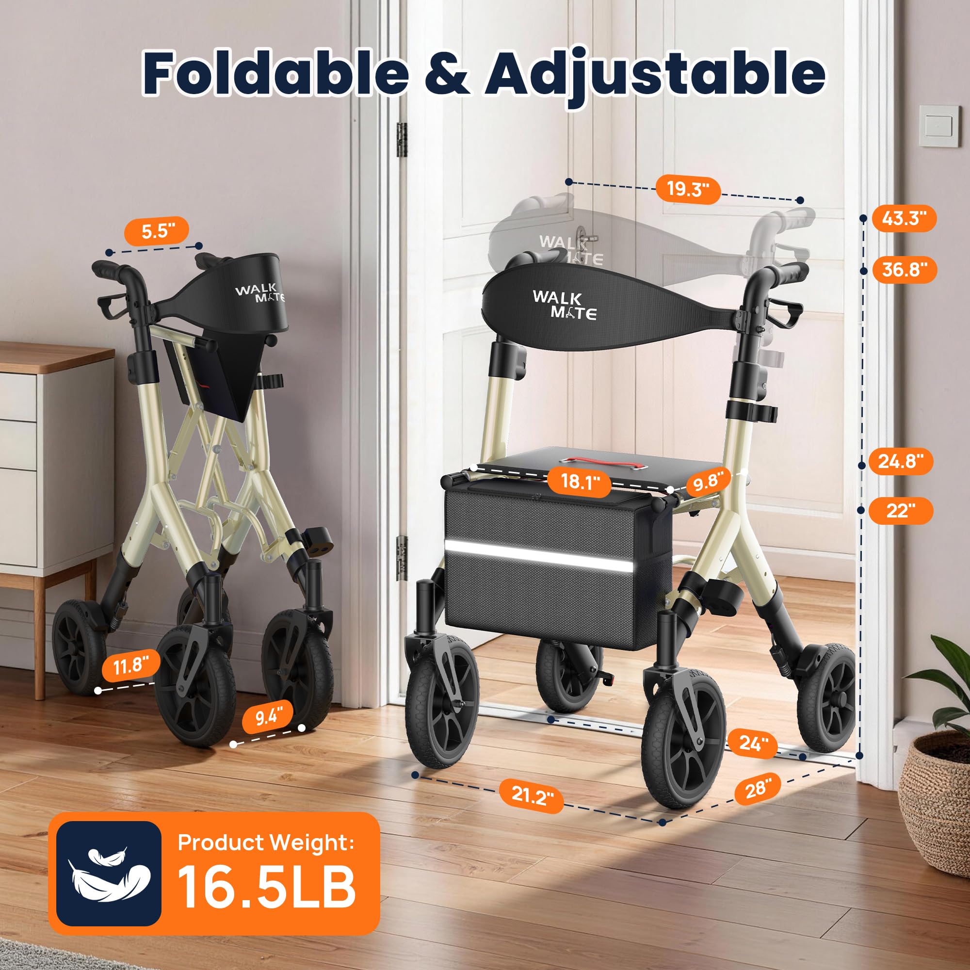 【10 Inch Wheels Fit for Multi-Terrain】Our WAlK MATE rollator walker for seniors comes with 10” front wheels, the anti-skid tread pattern on Wheels can provide greater grip on the ground to prevent your rollator walker from slipping while walking, and this 10" larger wheel walker suitable for most terrain.