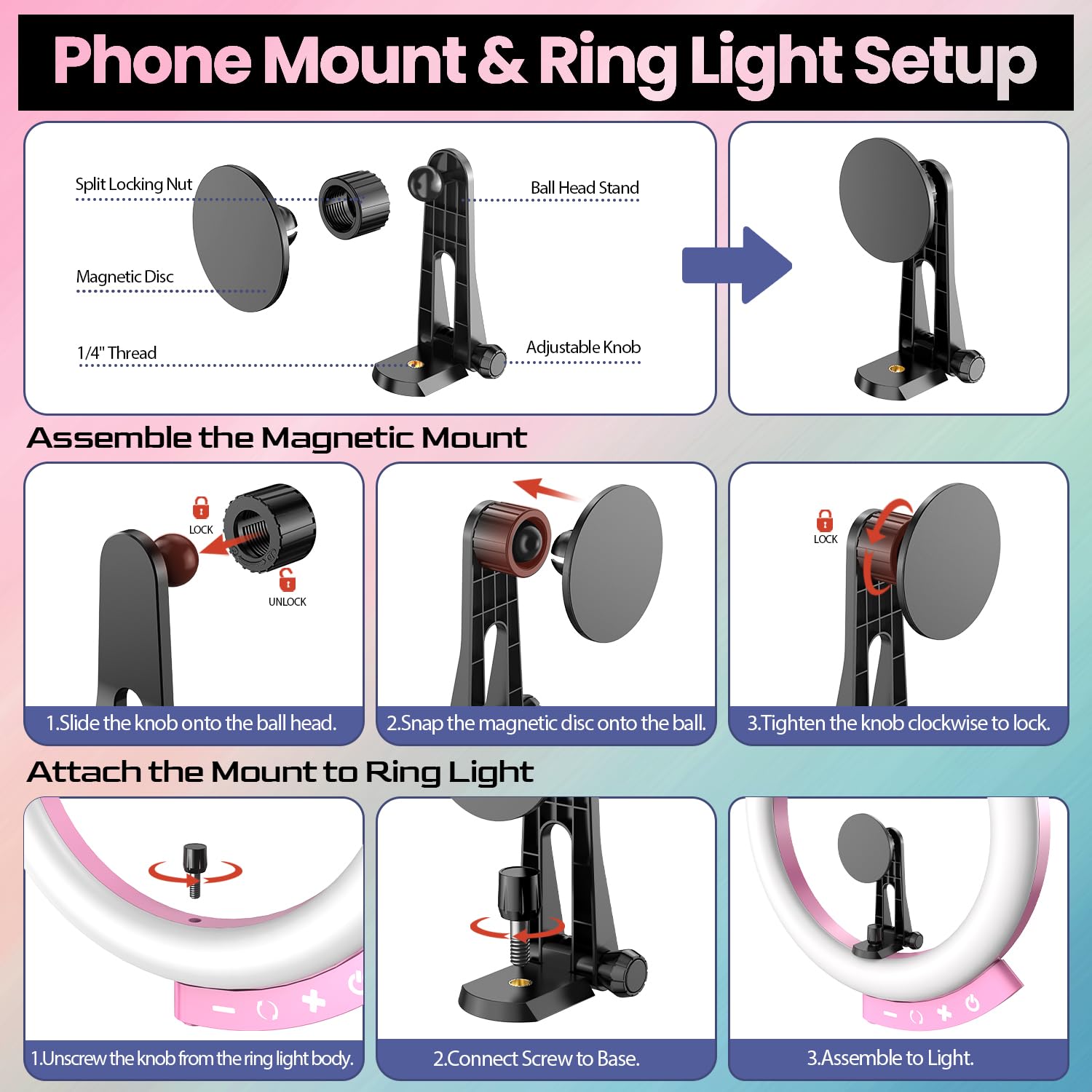 【Versatile Mounting Solutions】Combine the Smartphone Mount and set up your camera to not just illuminate but elevate your content and enhance your creative pursuits. The Ring Light stands out as the USB designed choice in the market, ensuring intentional and effective lighting for your endeavors.