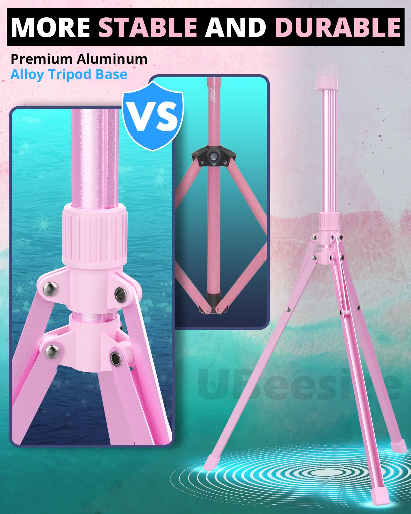【More Stable and Durable Tripod】Our 62-inch tripod boasts a durable aluminum alloy weighted base for enhanced stability. The tripod head features an international standard 1/4-inch interface, ensuring universal compatibility with smartphones, cameras, ring lights, webcams, and more. This design provides secure support and versatile usage for photography and recording.