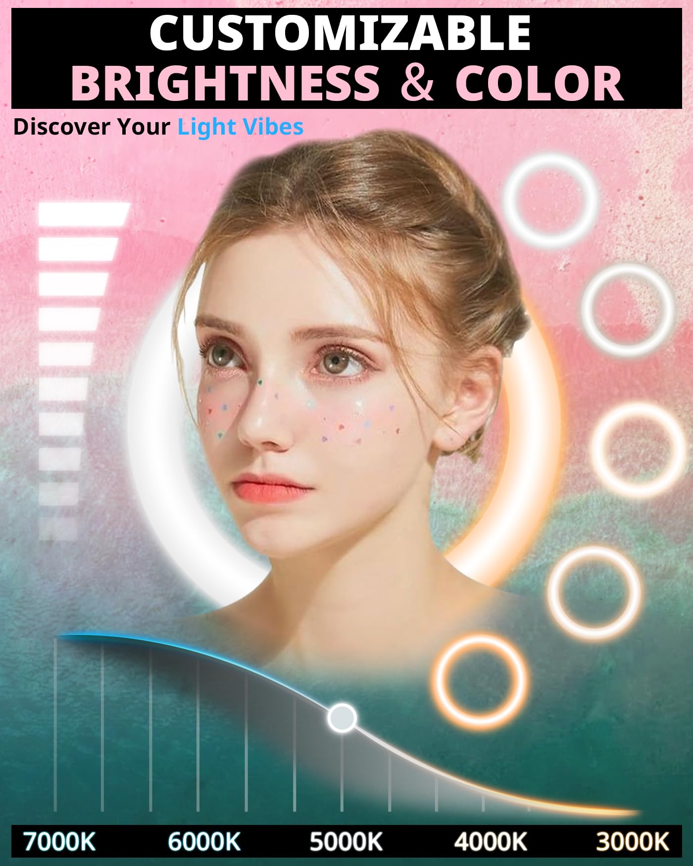 【Touch-Control Design】Our ring light features advanced touch-sensitive design, incorporating touch-sensitive power and adjustment keys, encompassing 5 levels of color temperature and 10 levels of brightness adjustment. Full control of your preferred light temperature and brightness in 10% increments to help you find the perfect light.