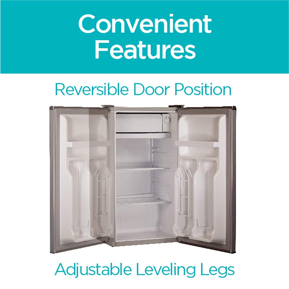 Convenient Features: Reversible door and adjustable leveling legs ensure flexible placement that is perfect as a bedroom fridge, small fridge for office, dorm refrigerator, or a compact mini fridge